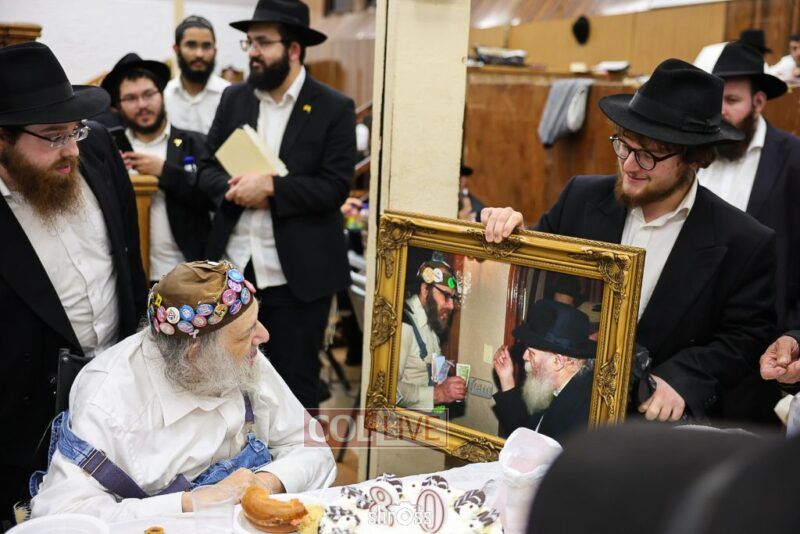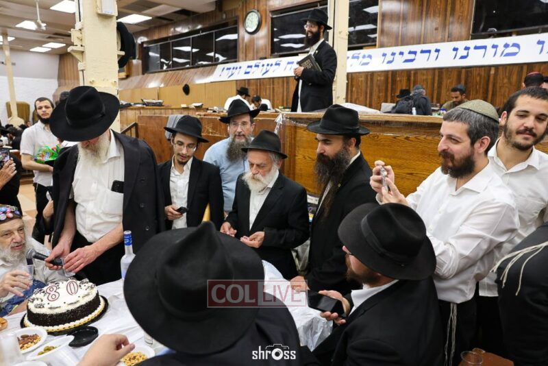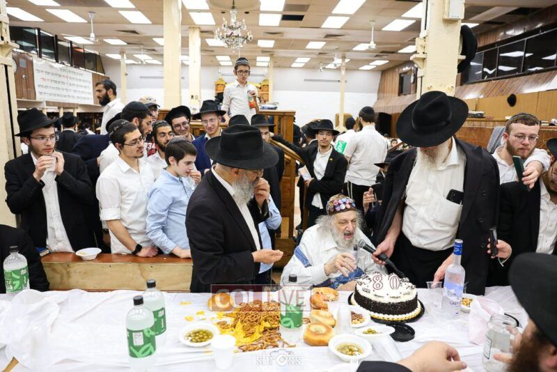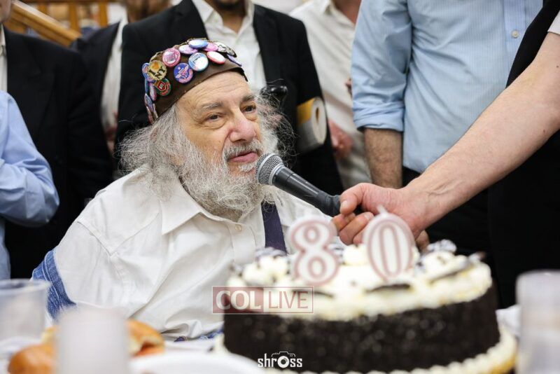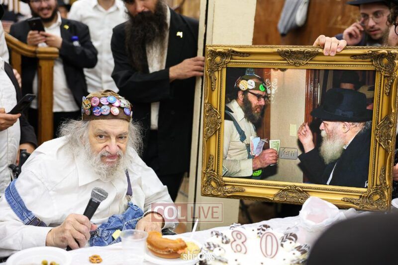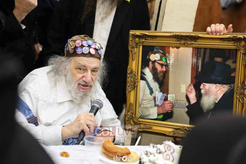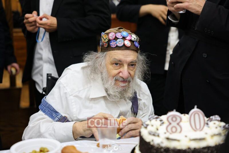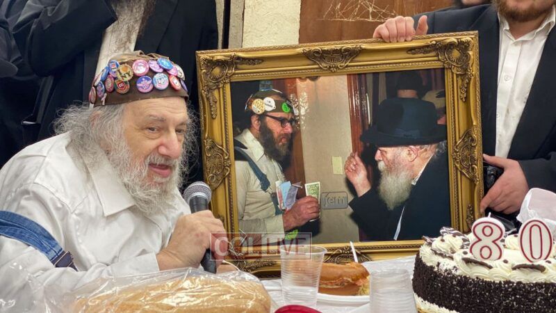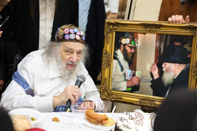 Crown Heights icon “Charlie Buttons,” a longtime beloved neighborhood figure, celebrated his 80th birthday with a Farbrengen in 770’s Main Shul on Wednesday evening.
