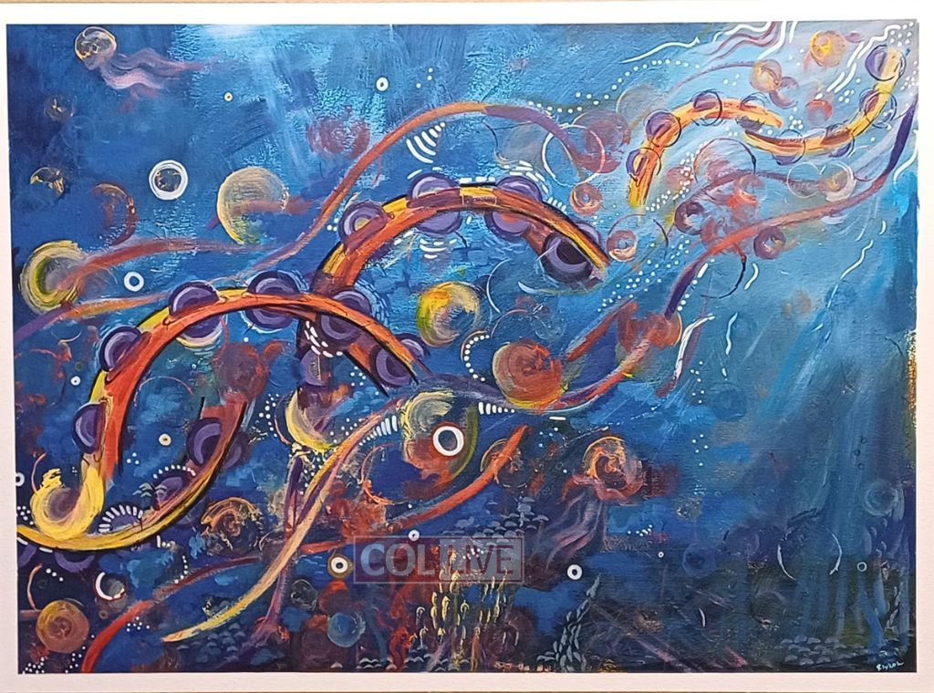 “A New Song” Song is a powerful form of communication. When we sing to G-d, our deepest most profound feelings of praise, love, hope, pain and yearning are expressed to Him, straight from our soul. Led by Miriam, the women danced with their tambourines and sang praise to G-d, infused with relief and deep joy. Throughout the slavery in Egypt, the women held fiercely to their faith, believing that G-d will redeem them from their pain, and that they will dance again. The Rebbe explained in a sicha while the men only sang after crossing the Red Sea, the women also danced and played tambourines. This is because Miriam the prophetess (who’s name means (bitter) experienced the exile on a deeper emotional level, so the faith needed to cope was deeper, and the release from captivity more joyous. To me this painting portrays hope of a song to come, telling the story of holding onto faith in dark times. In the heaviest of days, the Jewish people still sing, still call out to G-d. The tambourines are a symbol of that determination, to constantly praise G-d and hope for redemption. The composition of my painting moves from dark to light, the tambourines climb like a ladder of optimism, leading us to the light, and to the tenth Song which will be sung in Moshiach times. The feminine energy of this painting reflects the unique quality that women have to inspire faith and movement, keeping the legacy of the brave Jewish women in Egypt alive. They felt the pain of exile so profoundly, that their genuine joy at their freedom was infectious. The women of today hold their torch, their tambourines, ready to greet Mashiach with a new song.