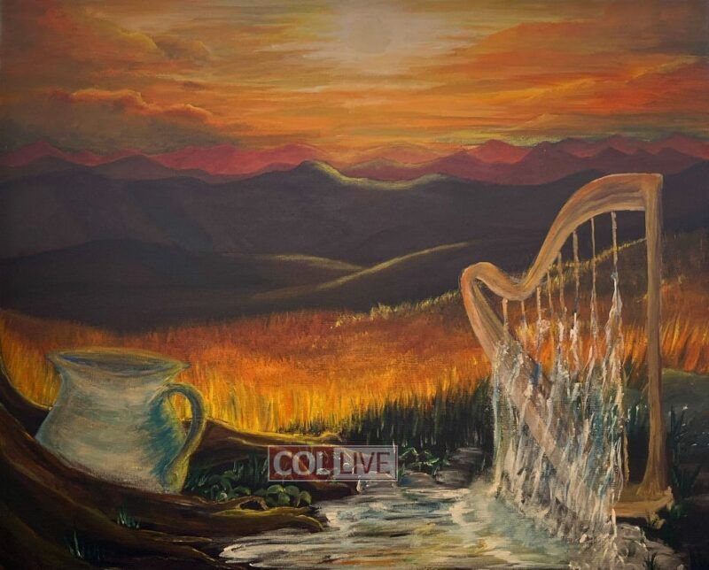 This painting was inspired by Miriam the Prophetess leading the women of Israel in song and dance after crossing the Red Sea in Exodus 15. I was struck by their celebration with timbrels, carried in faith that redemption would come. What resonated with me most deeply was the powerful image of women expressing their spiritual connection to Hashem with such joy, strength, and certainty. Their faith felt active, embodied—an expression of trust that went beyond words. The sparks of light in the piece symbolize nitzotzot, hidden sparks of holiness that are elevated through acts of goodness. This idea comes from the teachings of the AriZal and was further emphasized by the Lubavitcher Rebbe, who taught that every mitzvah, no matter how small, has the power to lift the world closer to redemption. I tried to express that visually through the upward spiral of golden light. The verse from Az Yashir Moshe, though not directly included, helped shape the emotional core of the piece, reflecting G-d’s enduring kindness. The painting speaks to the movement of faith—both personal and collective—as something deeply rooted in joy and connection. Ultimately, it’s about women’s spiritual strength, the sparks we lift, and our ongoing role in the journey toward redemption.