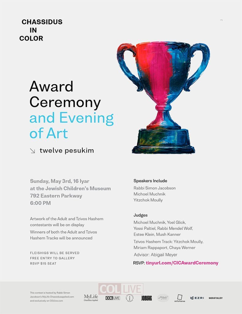 As this is an RSVP event, be sure to visit: Chassidus in Color Award Ceremony in brooklyn – Checkout to reserve your place. The event will also be livestreamed on COLlive for those abroad.