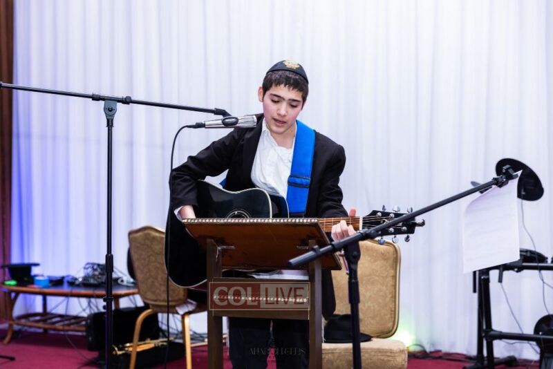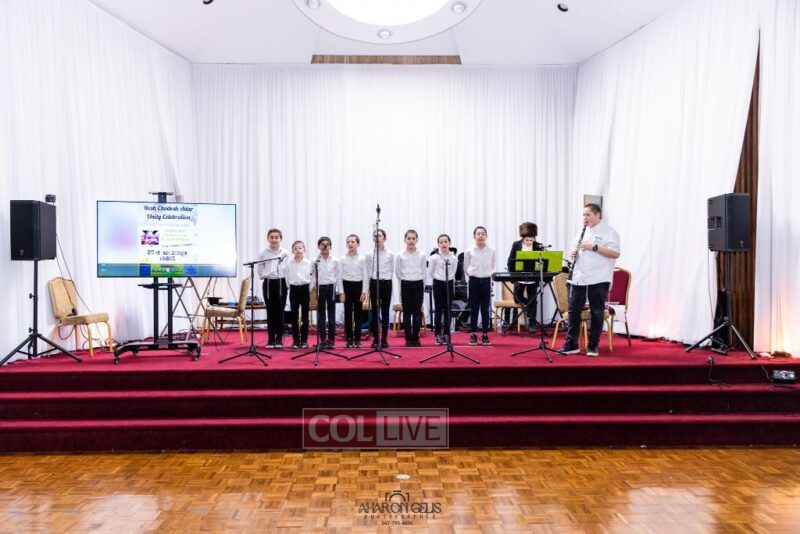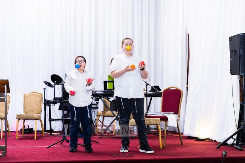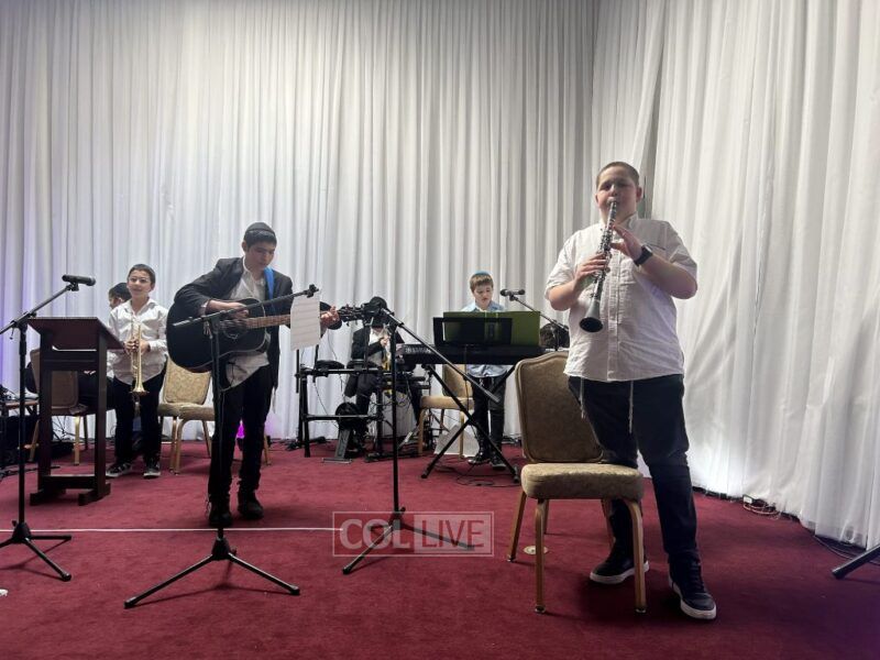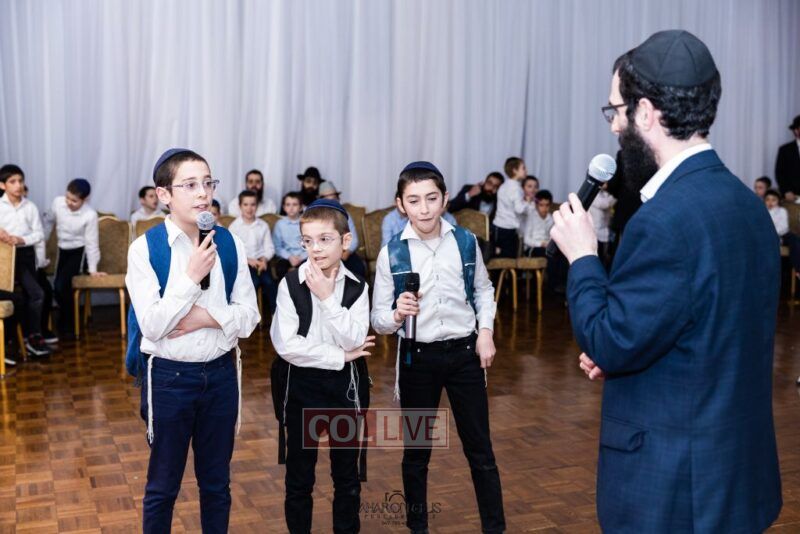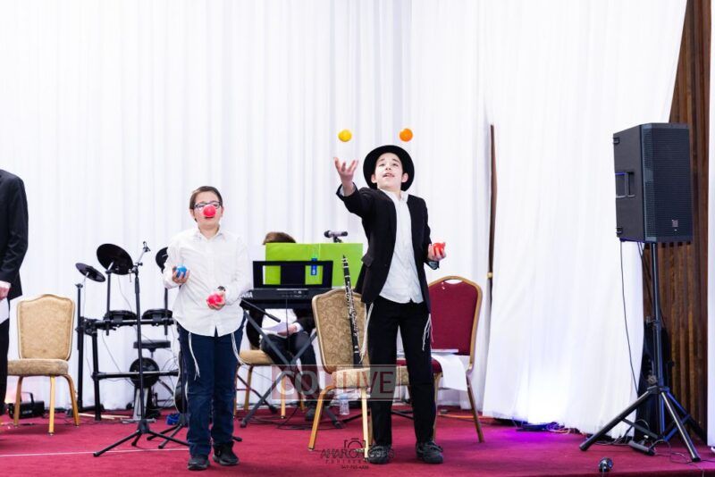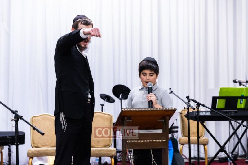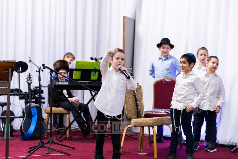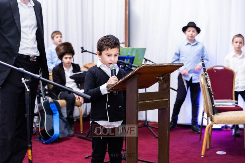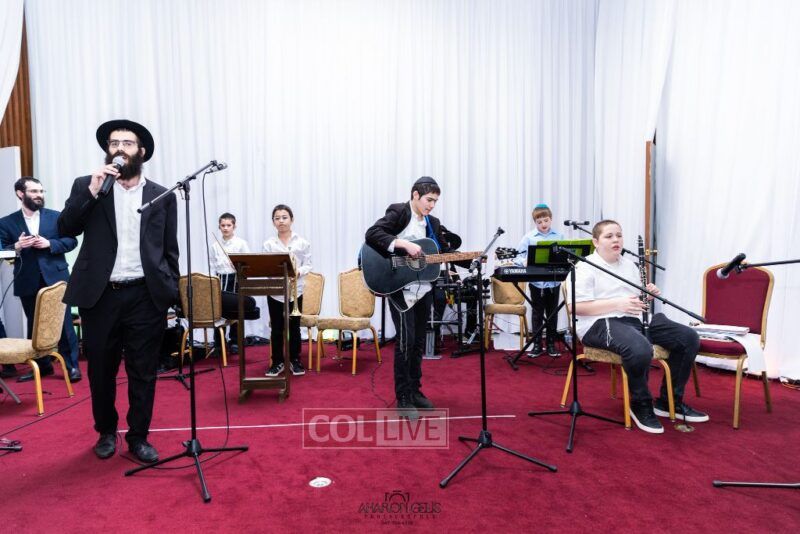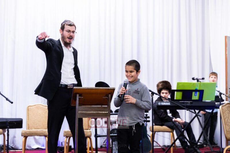 Afterwards, students showcased their talents in a fun Talent Show, featuring juggling and magic tricks. The Cheder then treated everyone to a musical performance with a choir and then a live band, accompanied by Rabbi Kastel, teacher at the Cheder.