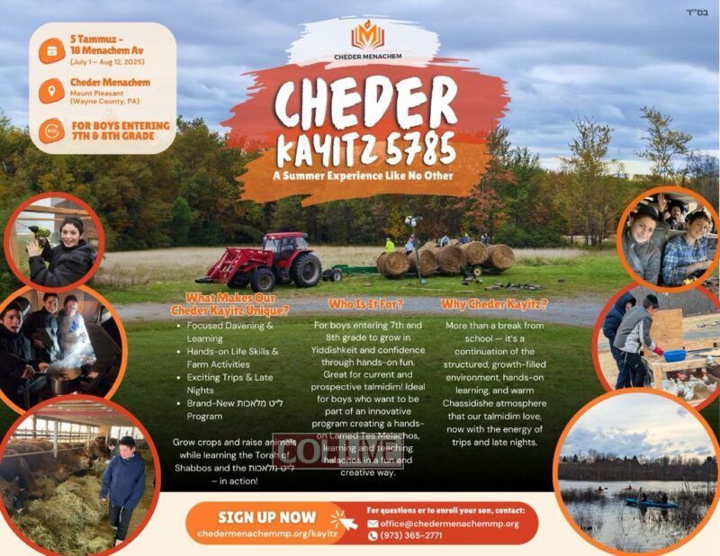 Cheder Kayitz registration is now open at Cheder Menachem of Mount Pleasant (Wayne County, PA).