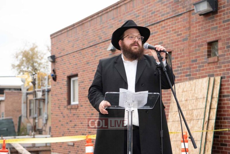 The event was opened by Rabbi Moshe Elya Markowitz, Associate Rabbi of Bnei Ruven. A letter of the Rebbe was read by Rabbi Meir Shimon Moscowitz, Head Shliach of Illinois. Tehillim was read by Rabbi Yosef Shmuel Moscowitz, Executive Director of Lubavitch Chabad of Illinois; Rabbi Yitzchok Wolf, Dean of Cheder Lubavitch Hebrew Day School; Rabbi Moshe Perlstein, Dean of Lubavitch Mesivta of Chicago; Rabbi Avrohom Moller of Associated Talmud Torahs; and Dr. Chaim Hecht, LGHS Board member and a founding parent of the school. Following Tehillim, Administrator Rabbi Shua Greenspan described to the crowd the features of the new building that will stand on the site and be finished next year.