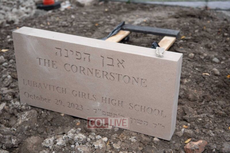 At the groundbreaking ceremony, Rabbi Hertz thanked Mrs. Walder for her vision that helped set LGHS on this path and invited her up to unveil the new school building’s cornerstone. Jenni Richton, Elana Berlin, and Jeff Sweet of Walder Foundation’s Jewish Life team joined as well together with Mrs. Chanie Hertz, Principal Emeritus Mrs. Esther Rochel Mosowitz, and Principal Mrs. Sarah Wineberg.