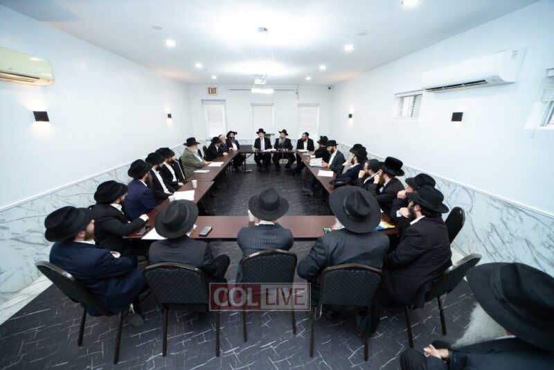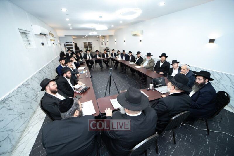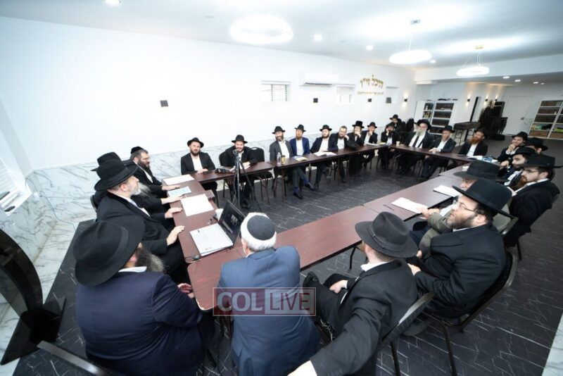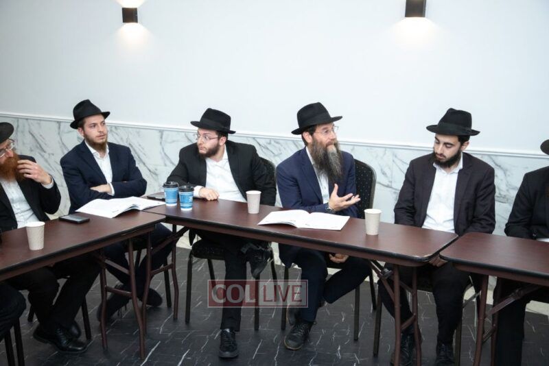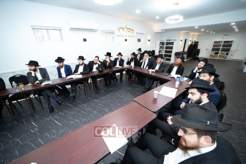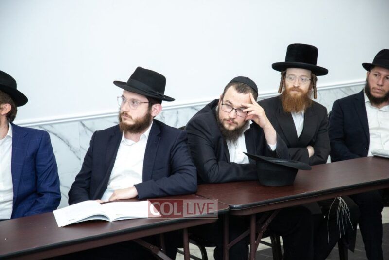 The Yom Iyun was part of a course on Chuppa v’Kiddushin for shluchim, after nine months of study in the Shulchan Aruch with a weekly shiur given by Rabbi Mordechai Farkash, author of Seder Chuppa v’Kiddushin who began the Yom Iyun with a practical shiur on the laws of writing a kesuba.