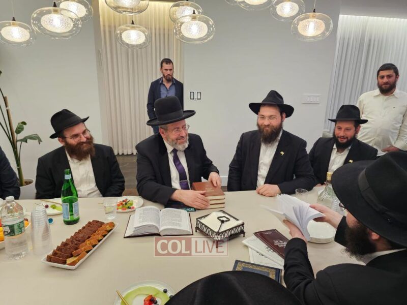 The Bukchin residence was filled with discussion of Torah, Shulchan Orach and many other matters. They spoke Divrei Torah including thoughts on Pilpulim, a number of which were written by the students that were gifted to the Chief Rabbi.