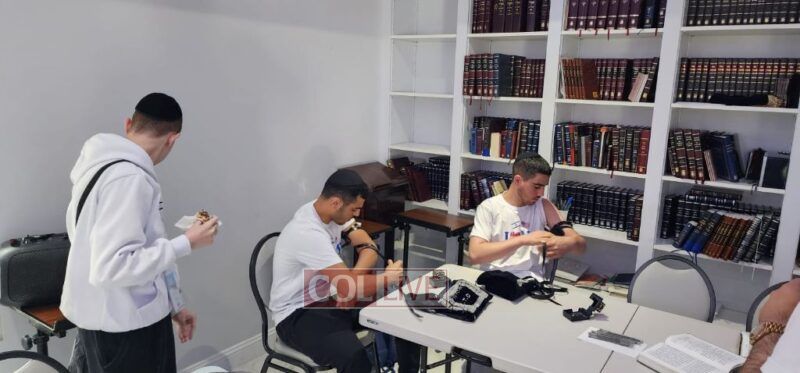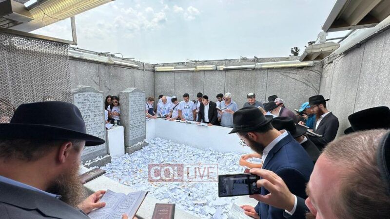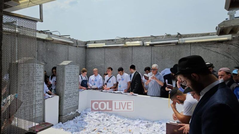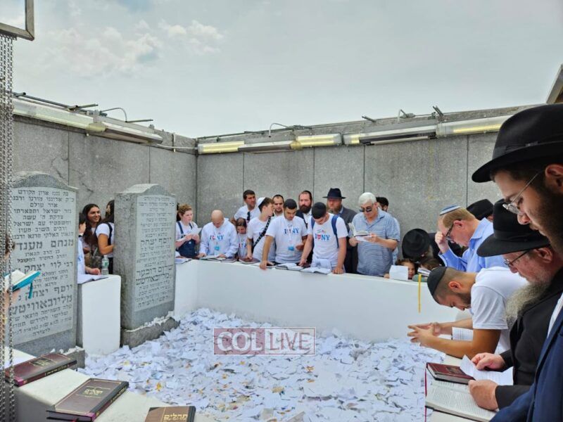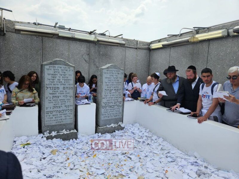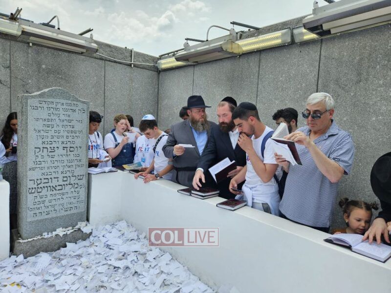 After putting on tefillin and writing notes with their requests, the children read their notes at the Ohel together with those of their friends being treated for similar illnesses at medical centers throughout Israel.