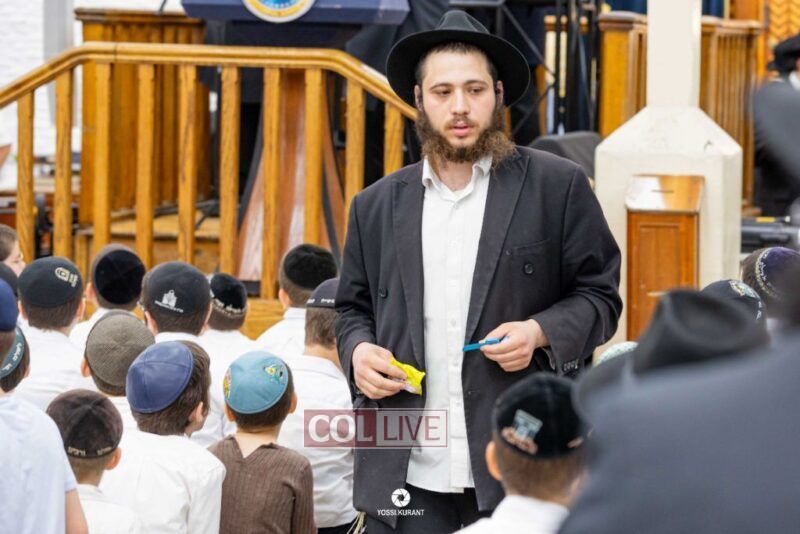 The program included Niggunim sung by Eli Marcus accompanied by Chony Milecki and Avi Piamenta, Pesukim, Tzedakah and hearing a Sicha.