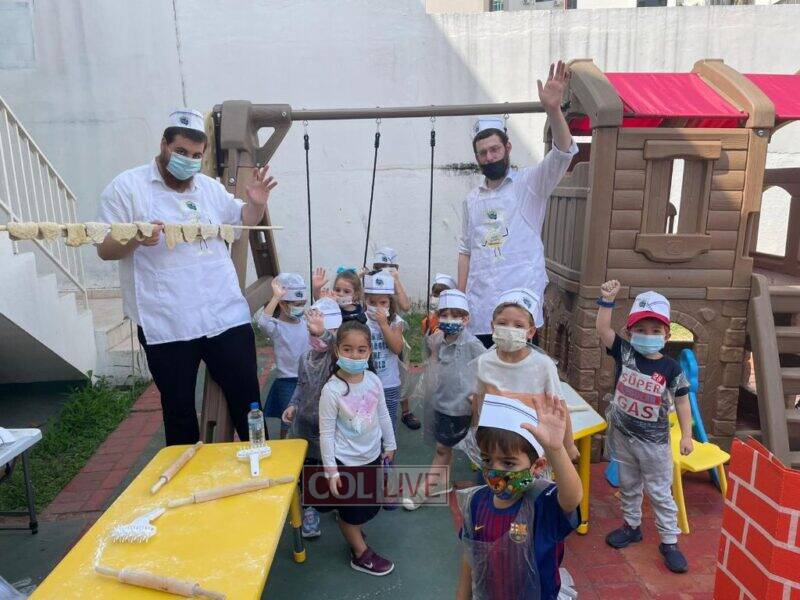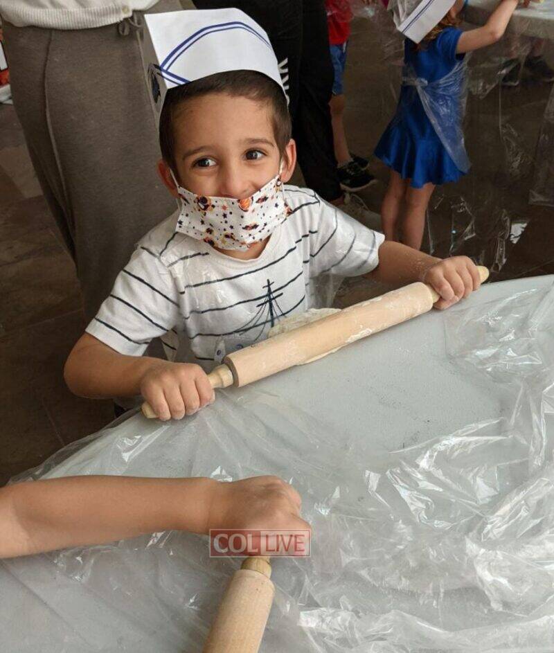 The children learned about the process of making Matzah, from the beginning in a wheat field to the baking in the oven, and together with the children they prepared “matza.”