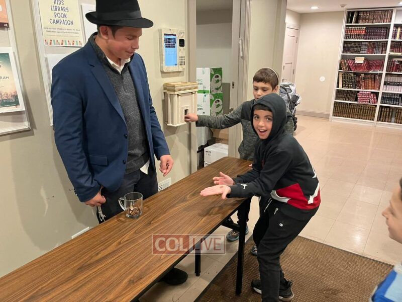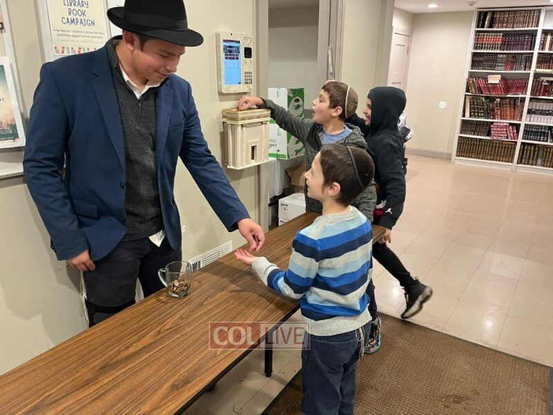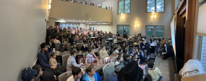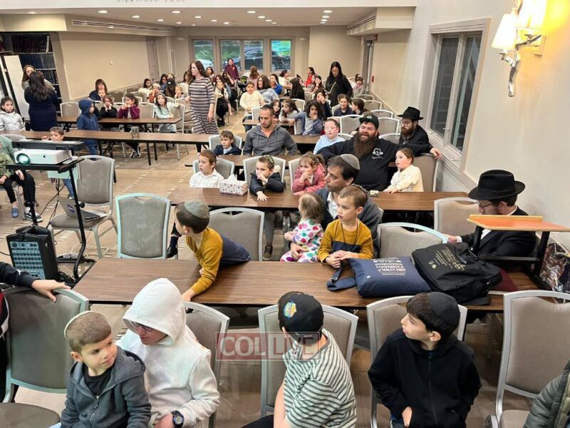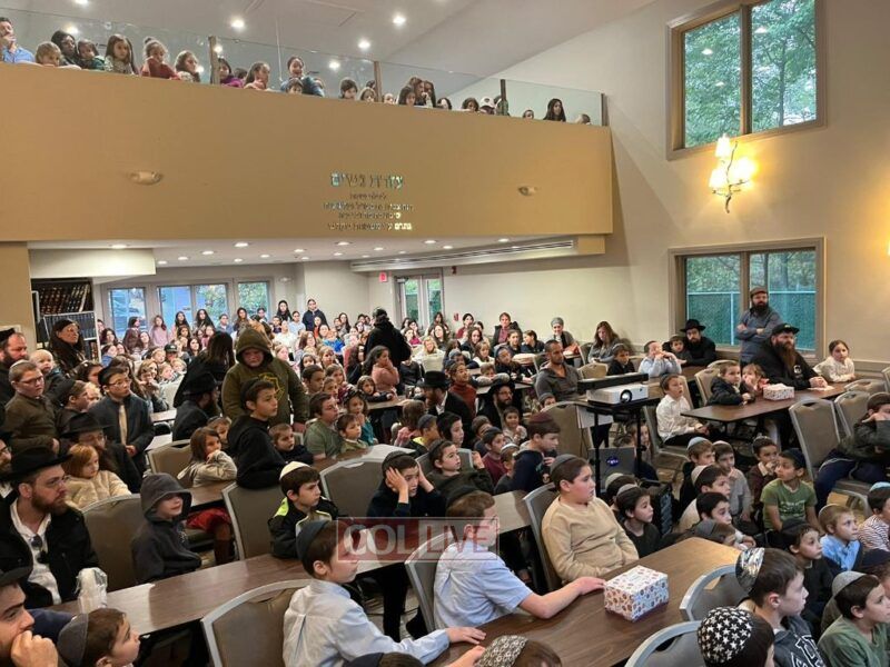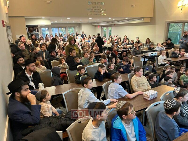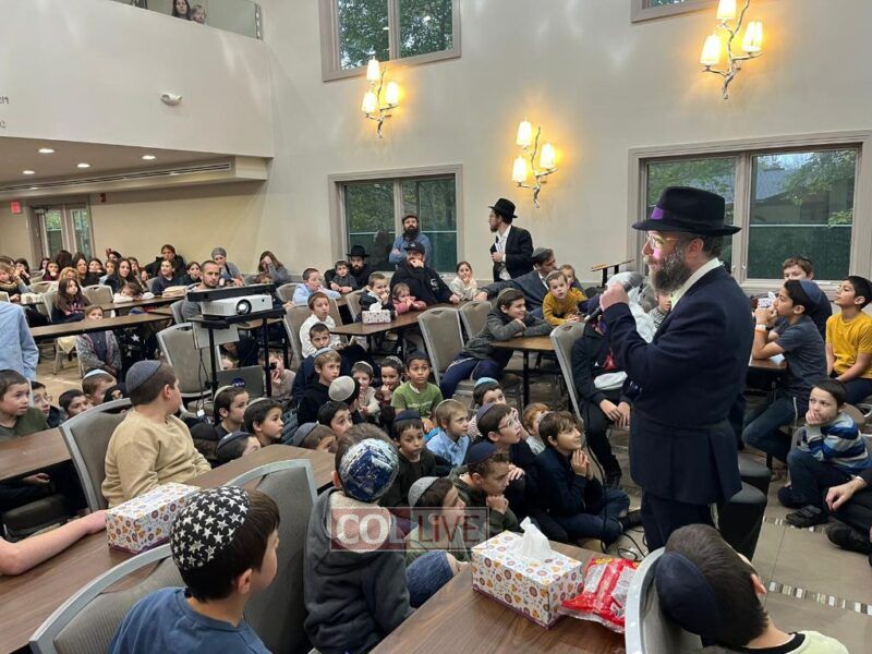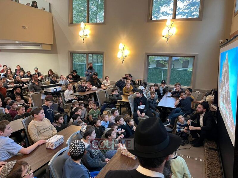 R. Yechiel Krisch, the organizer of the event, and Magid Shiur in the community, and R. Yisroel Silverstein, a veteran MeChanech and Magid Shiur in the community, led the children in Psukim, Tehillim, and further words of inspiration. As the children filed out of the shul, they each received candies and enjoyed a pizza dinner generously donated by Pies N’ Fries.