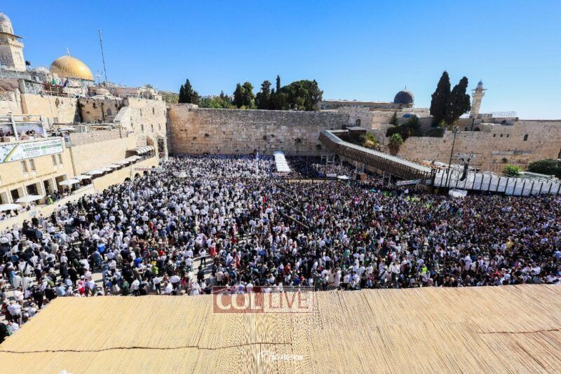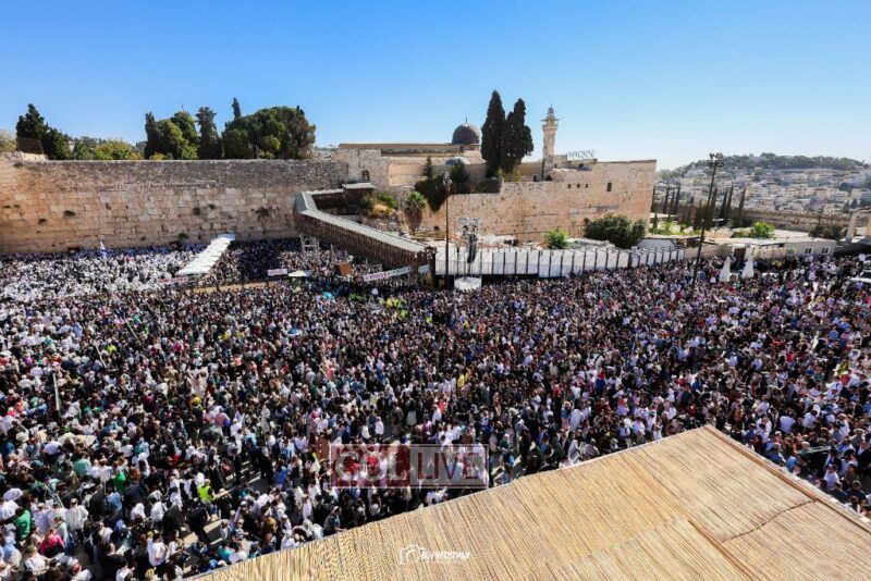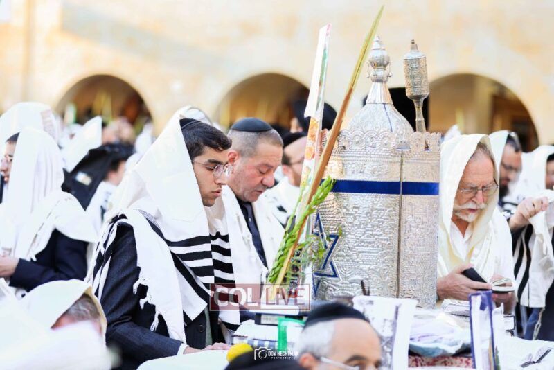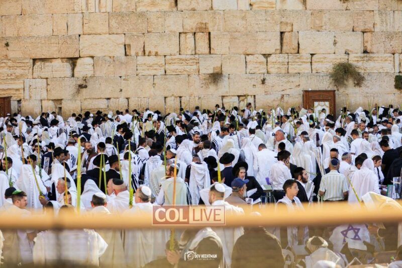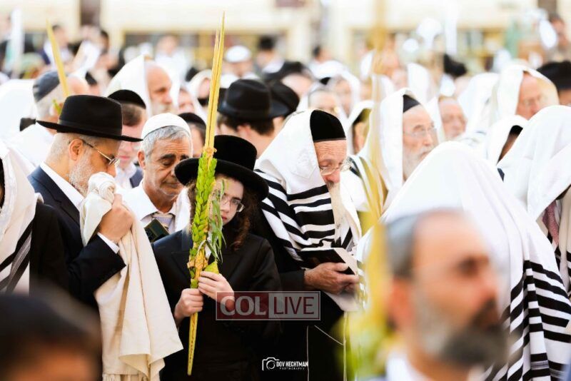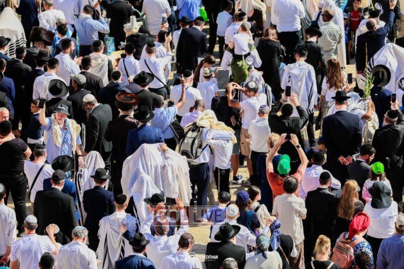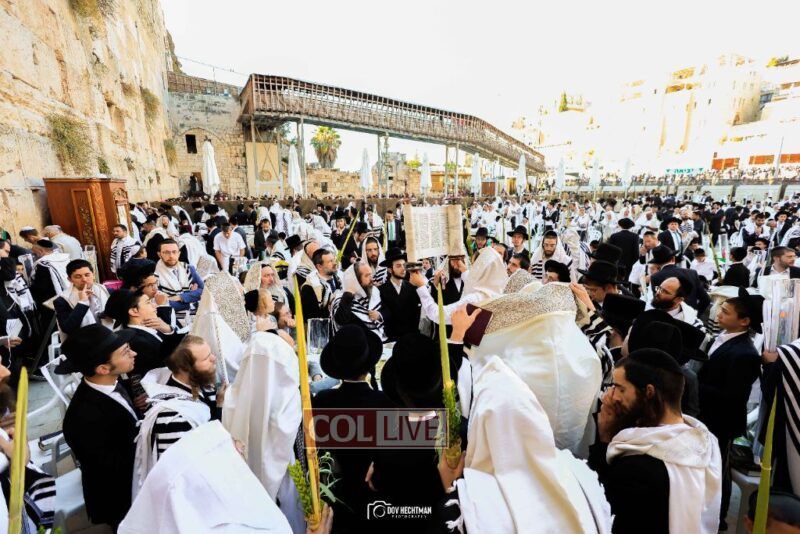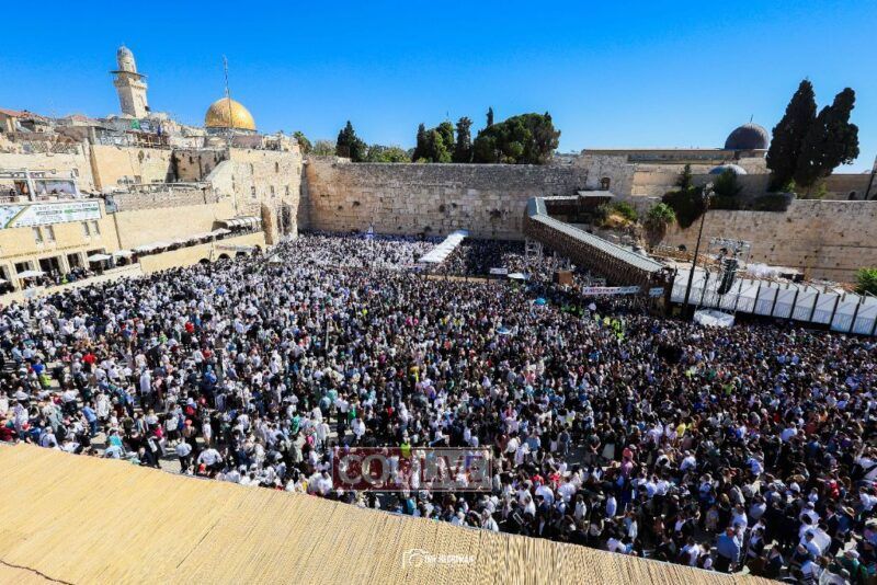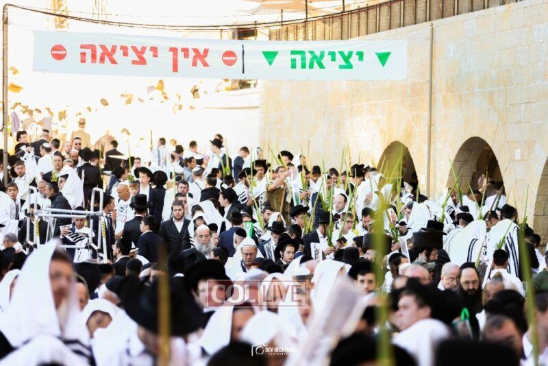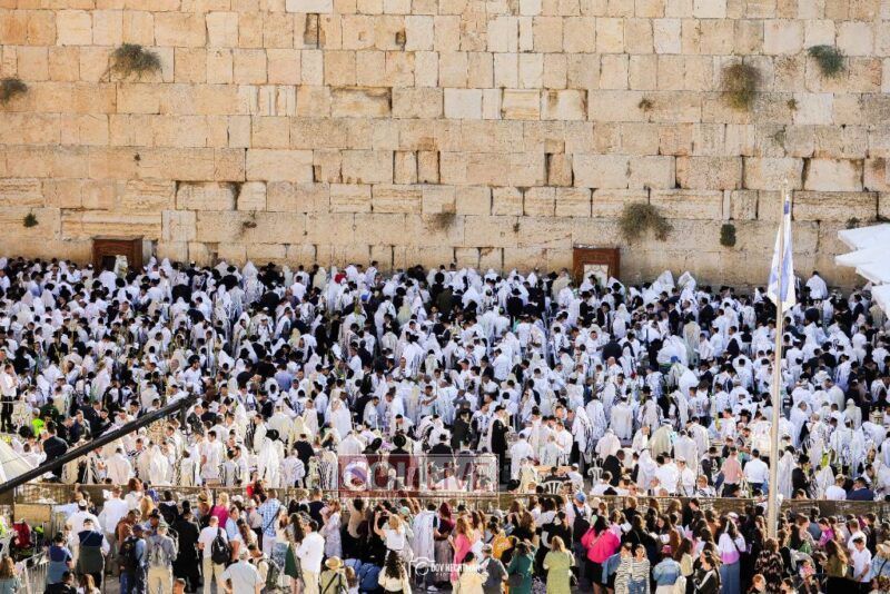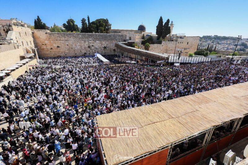 Many thousands of Jewish people from all walks of life filled the Kotel in the Old City of Jerusalem on Sunday morning for Shachris davening on Chol Hamoed Sukkos. It included hundreds of kohanim reciting Birchas Kohanim as customary. Photos