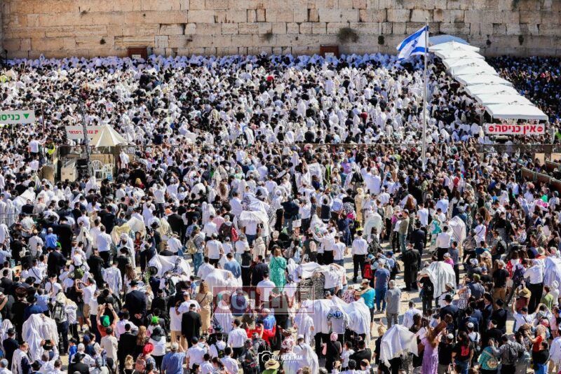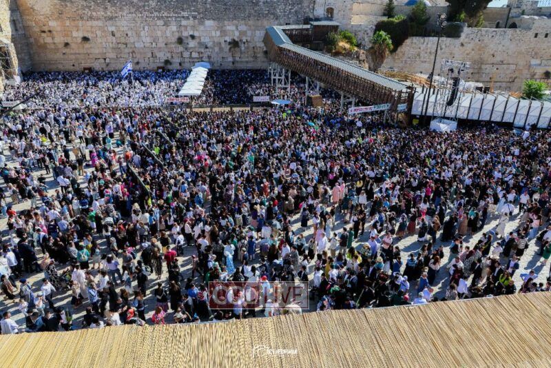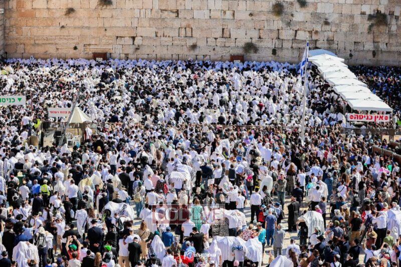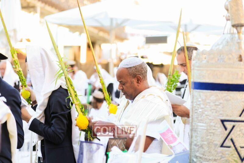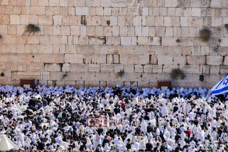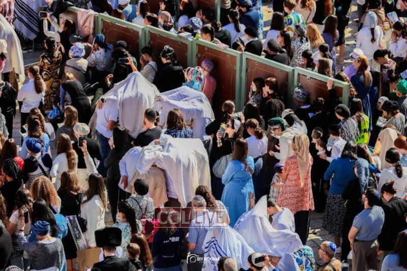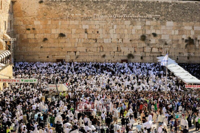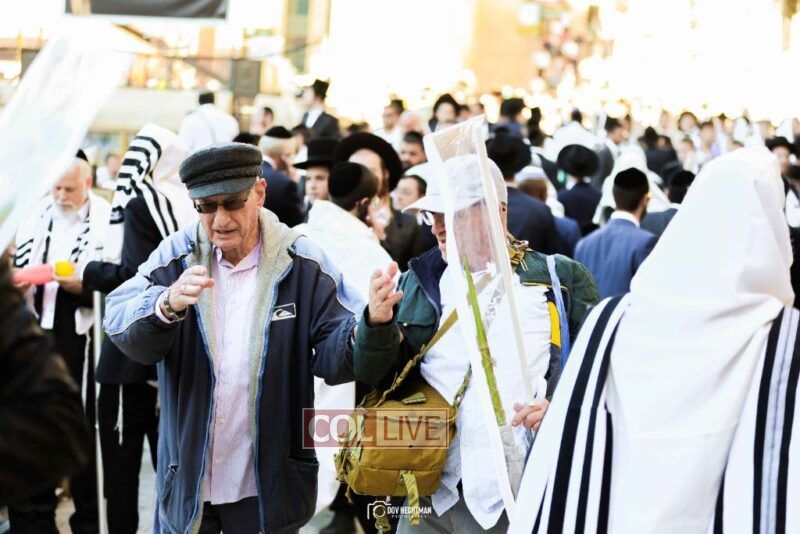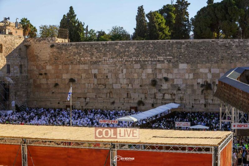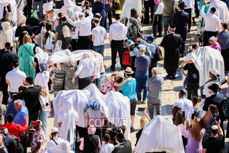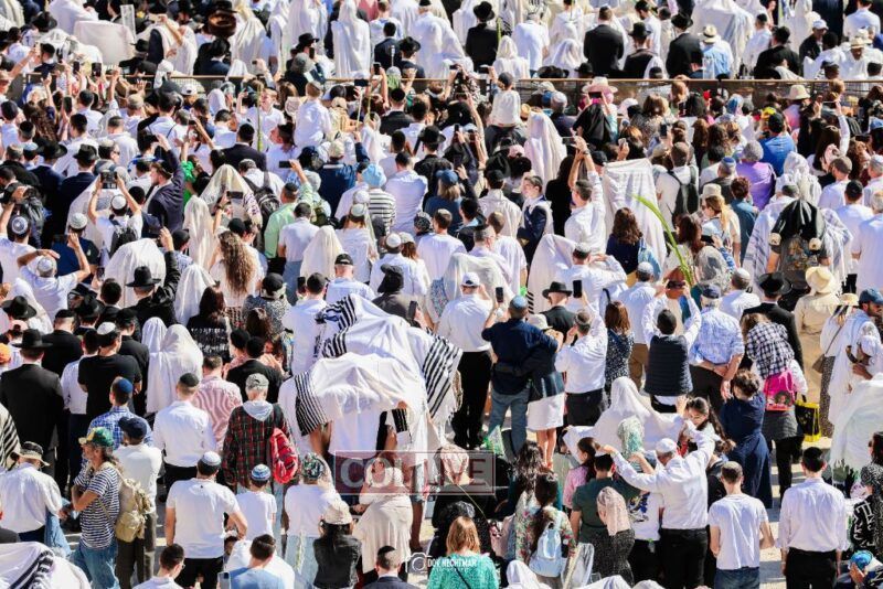 Many thousands of Jewish people from all walks of life filled the Kotel in the Old City of Jerusalem on Sunday morning for Shachris davening on Chol Hamoed Sukkos. It included hundreds of kohanim reciting Birchas Kohanim as customary. Photos