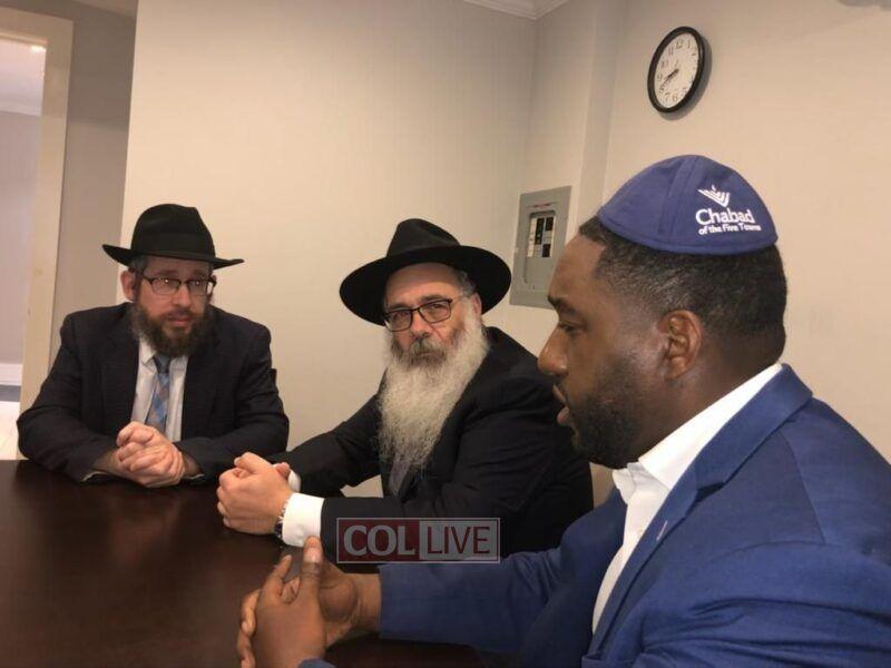 Pinion was accompanied by Five Towns, NY, Shliach Rabbi Zalman Wolowik and Rabbi Shimon Kramer, Shliach in Merrick, NY.