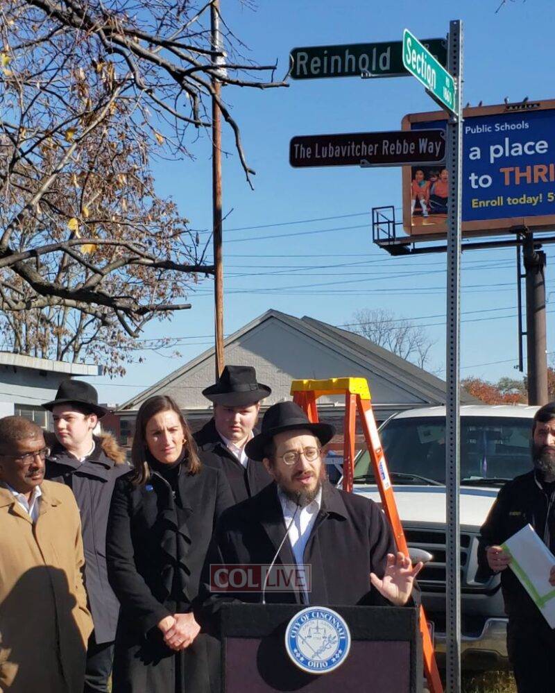 The City Council of Cincinnati held a special event in which they unveiled the new honorary street name: “The Lubavitcher Rebbe Way.”