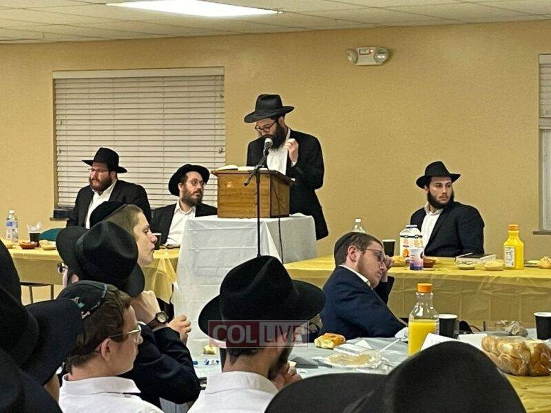 The Talmidim first went to the local Chabad house for a special “Panel”. Many questions about Moshiach were answered by the panelists and that led directly into a grand banquet. Rabbi Wolf and Rabbi Eliyahu Simpson spoke at the banquet. Following spirited dancing, the Talmidim returned to Yeshiva for Maariv and an uplifting Farbrengen for the whole community. Rabbi Wolf also spoke for the local Nshei Chabad of Cincinnati. These events were all arranged by the Talmidei Hashluchim.