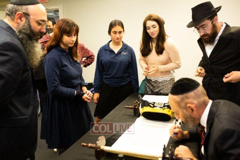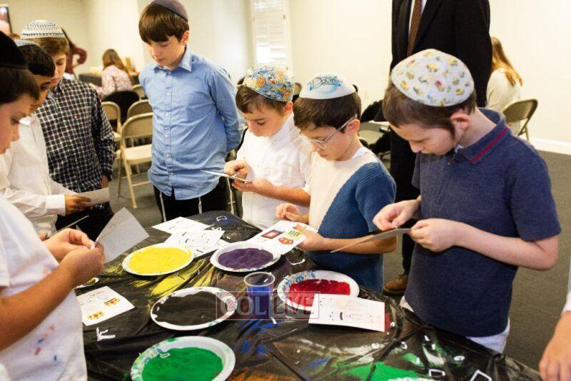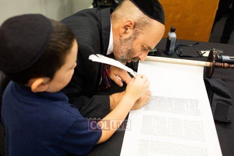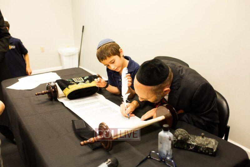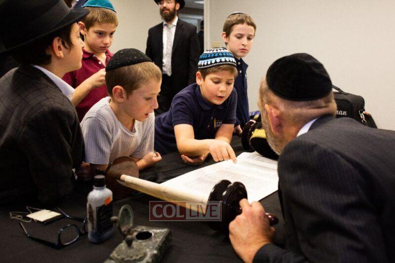 Students came dressed in Shabbos clothes and all had an opportunity to watch and assist the Sofer complete the final letters. There were Torah-themed crafts and activity stations, music, and