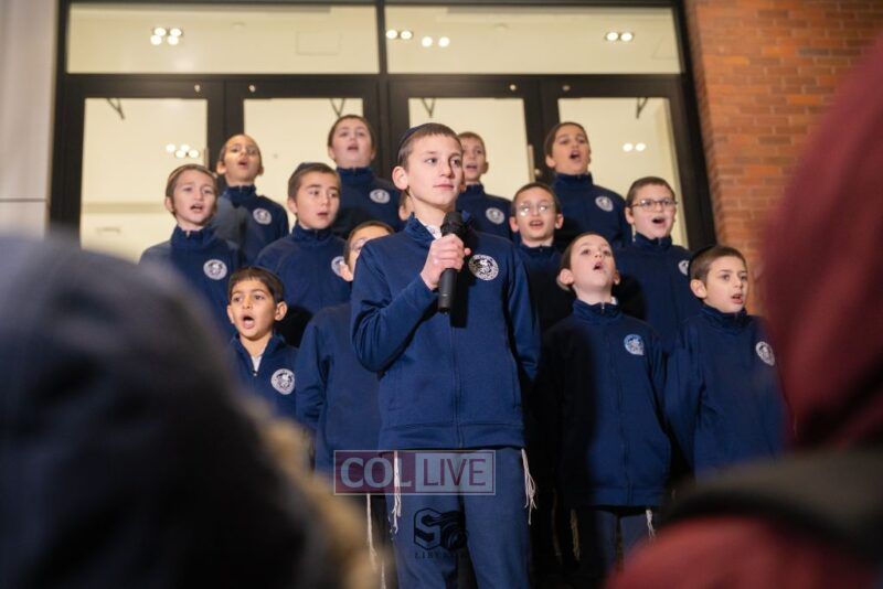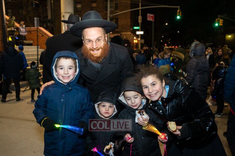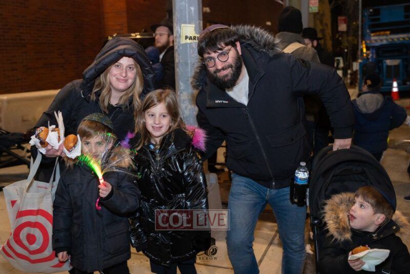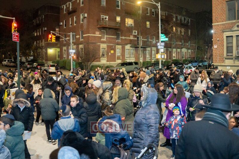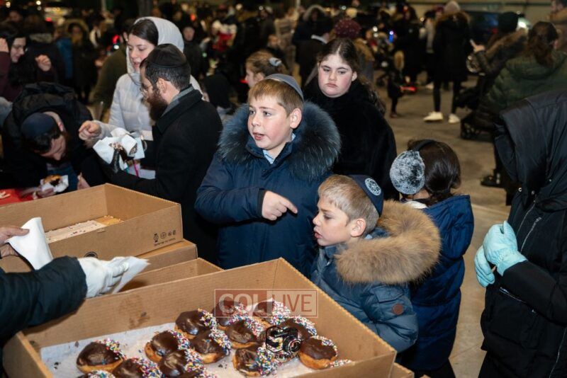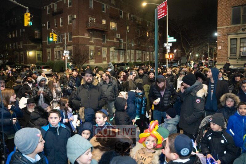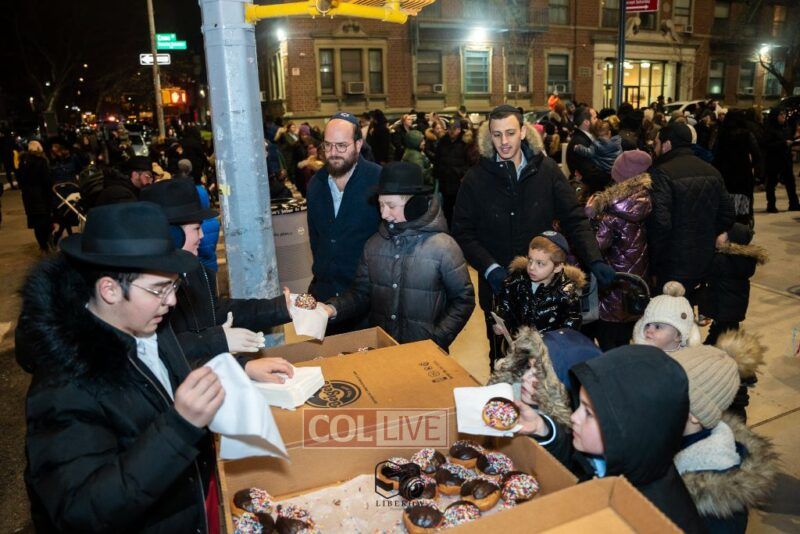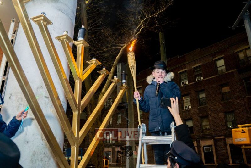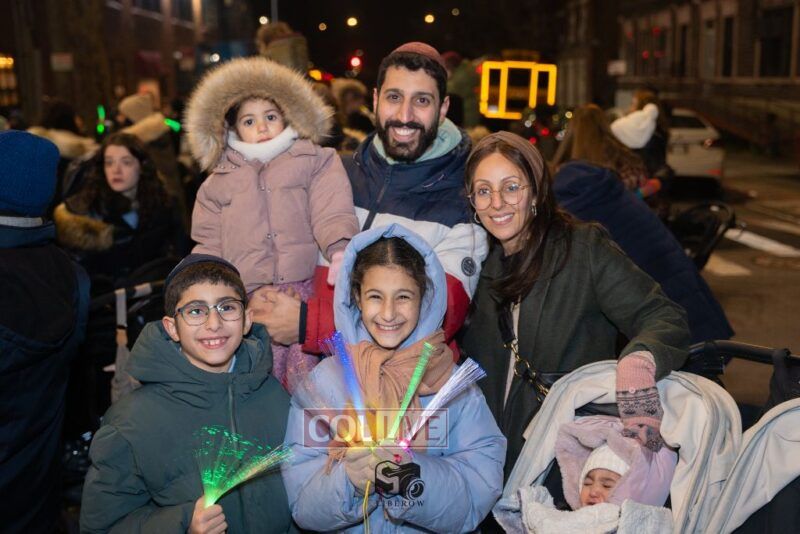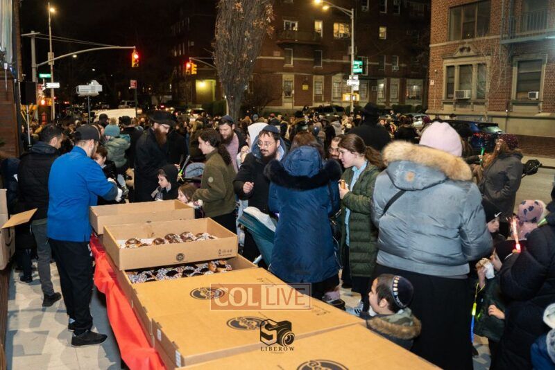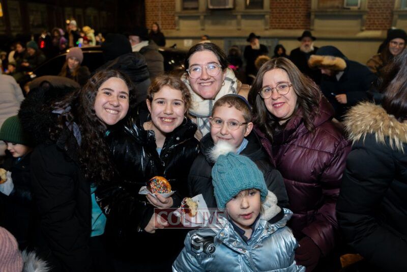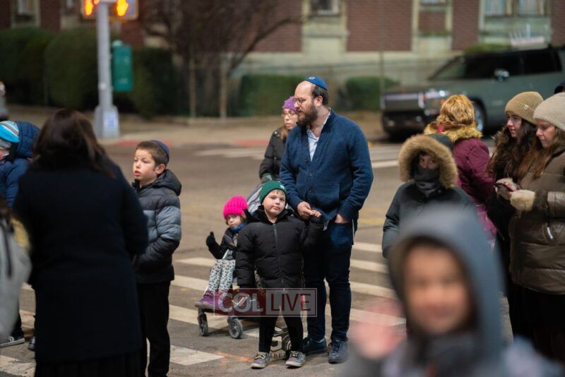 Hundreds joined a grand community-wide achdus Menorah Lighting event Thursday night, the first night of Chanukah, on Tomchei Temimim Way, hosted by Lubavitch Yeshiva in Crown Heights.