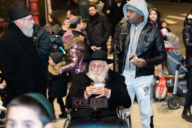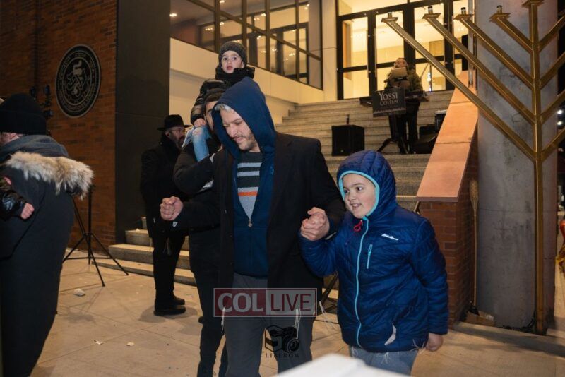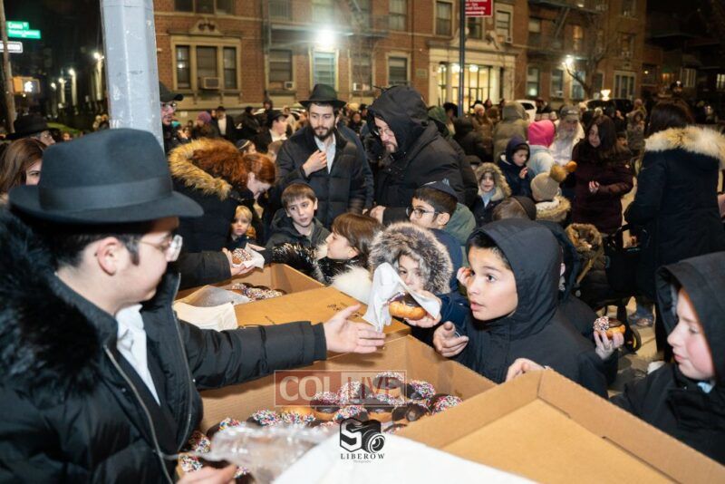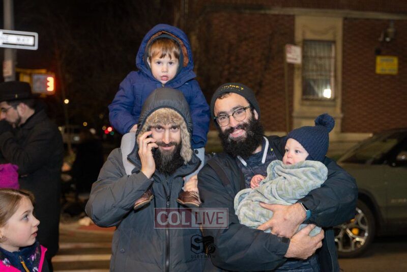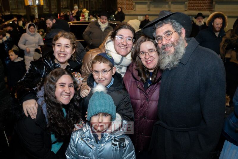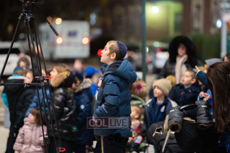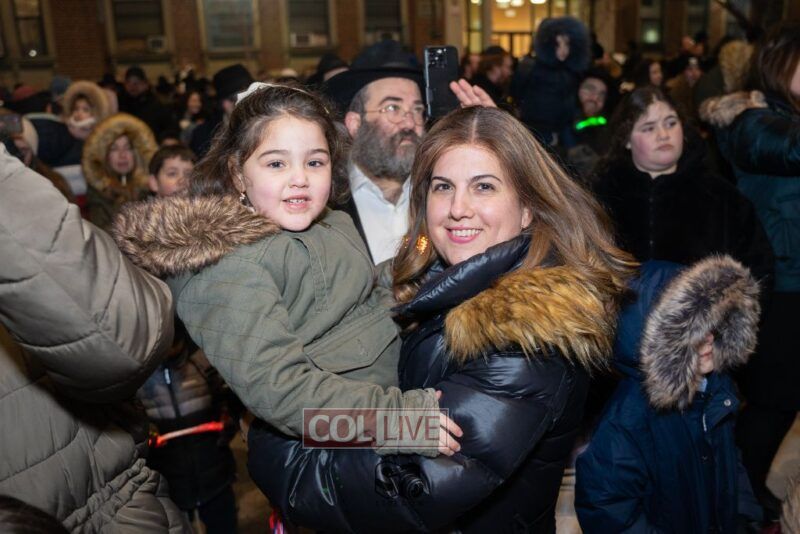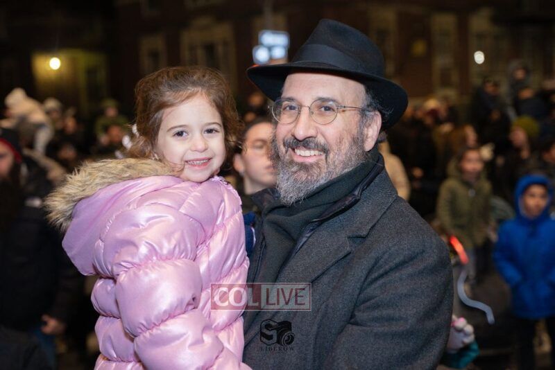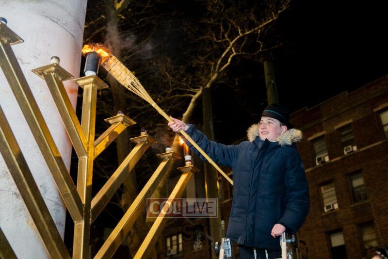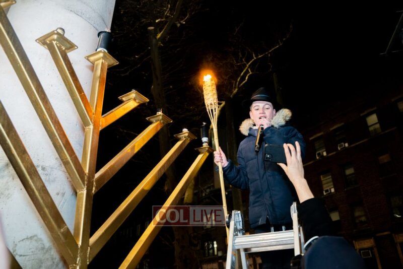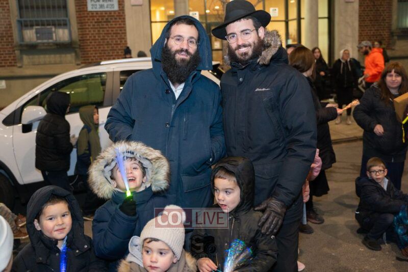 Hundreds joined a grand community-wide achdus Menorah Lighting event Thursday night, the first night of Chanukah, on Tomchei Temimim Way, hosted by Lubavitch Yeshiva in Crown Heights.