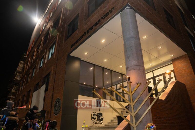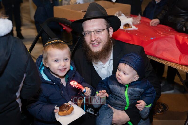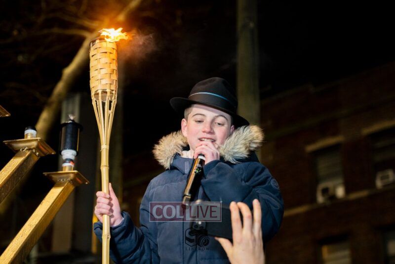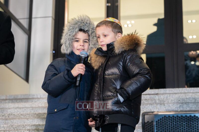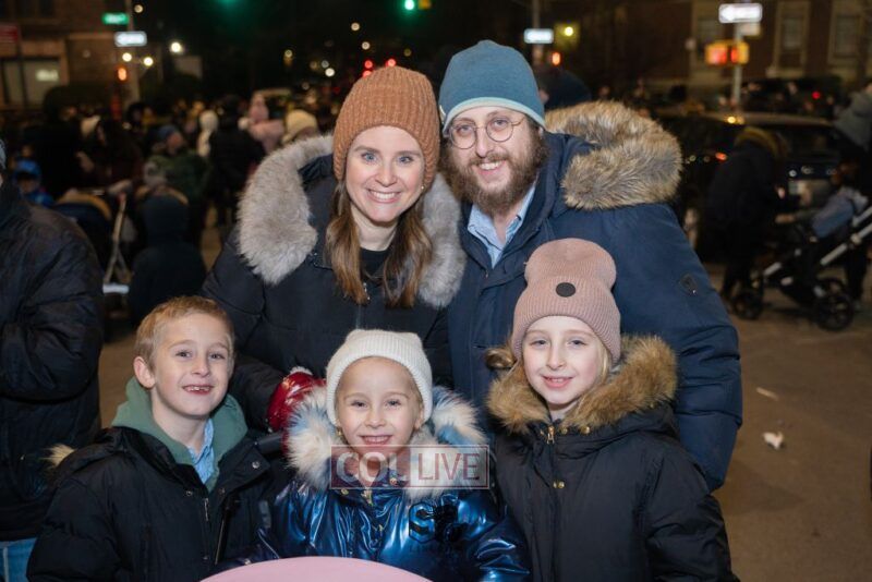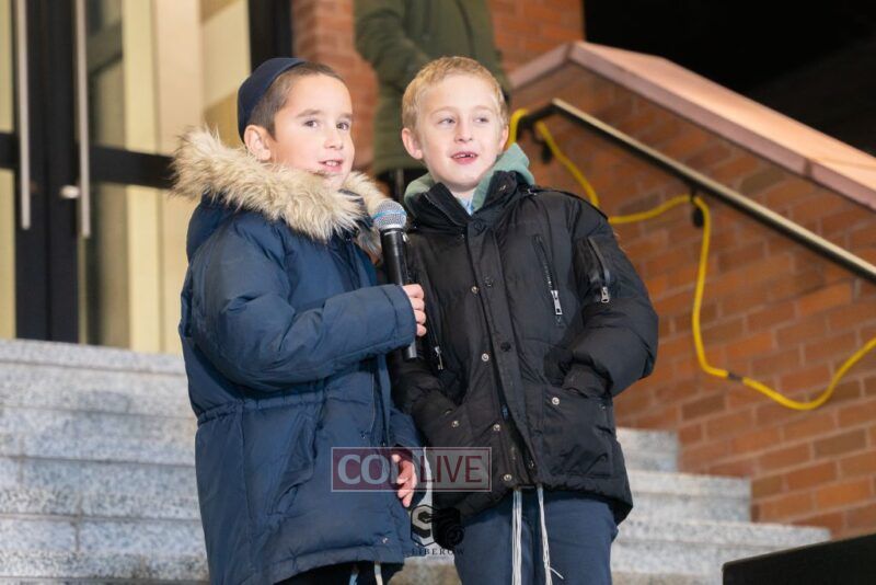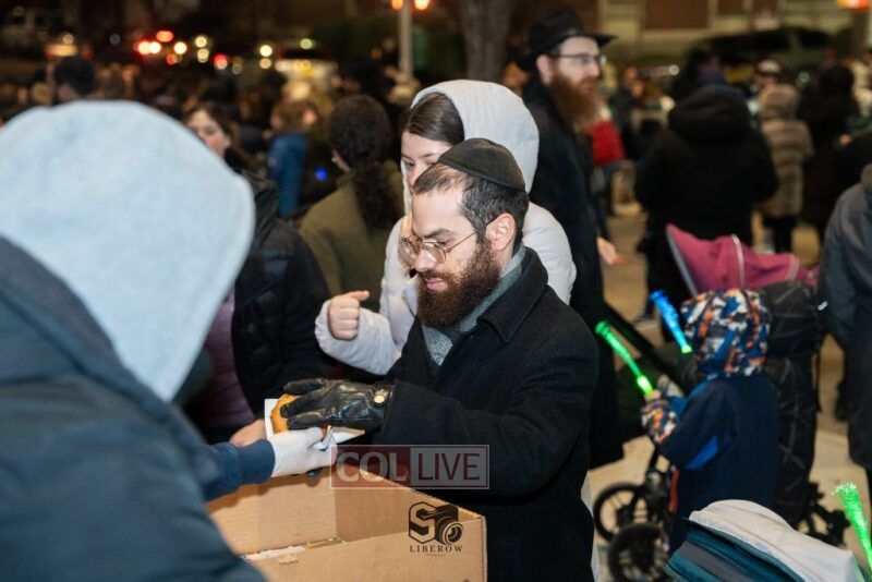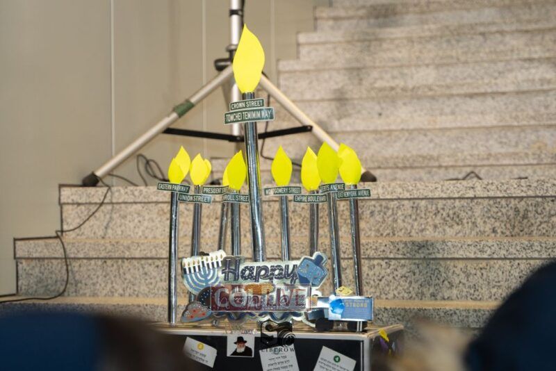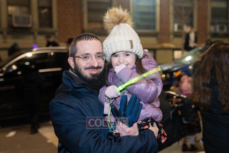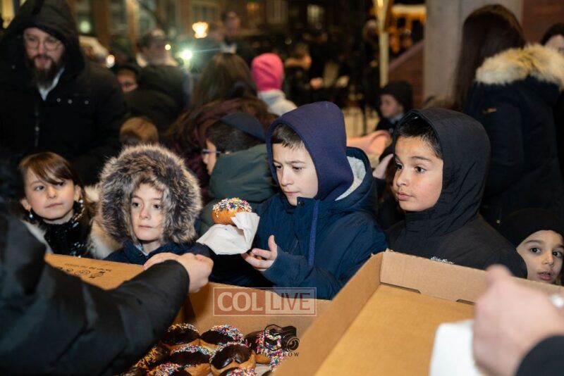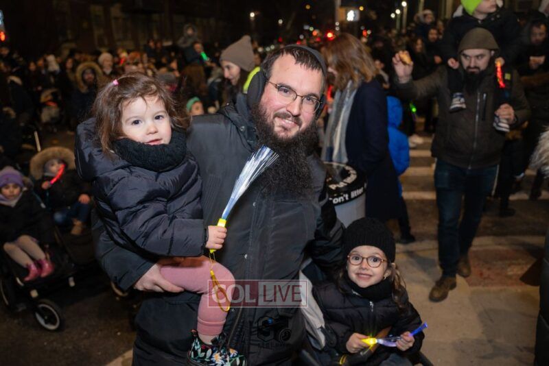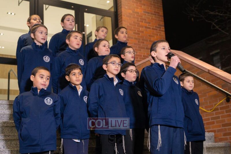 Hundreds joined a grand community-wide achdus Menorah Lighting event Thursday night, the first night of Chanukah, on Tomchei Temimim Way, hosted by Lubavitch Yeshiva in Crown Heights.