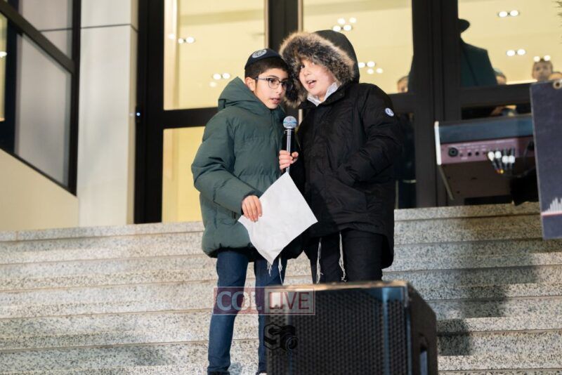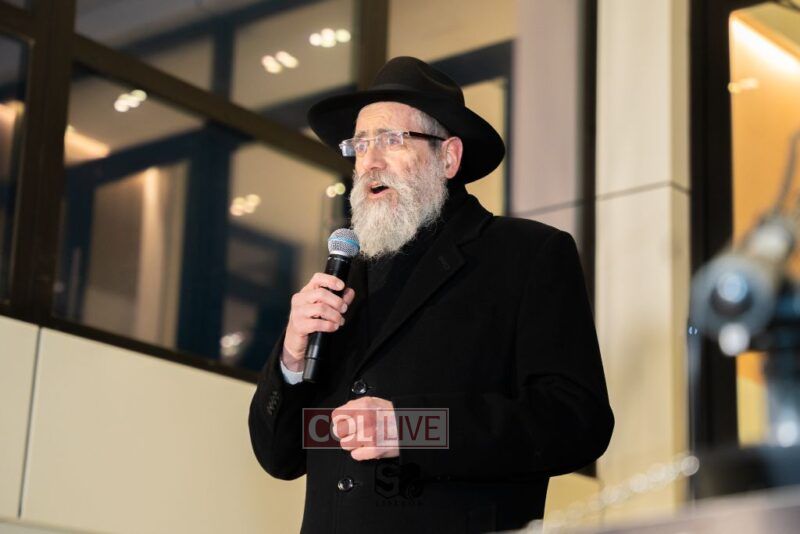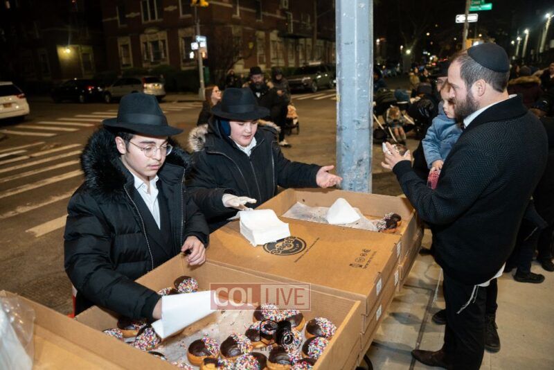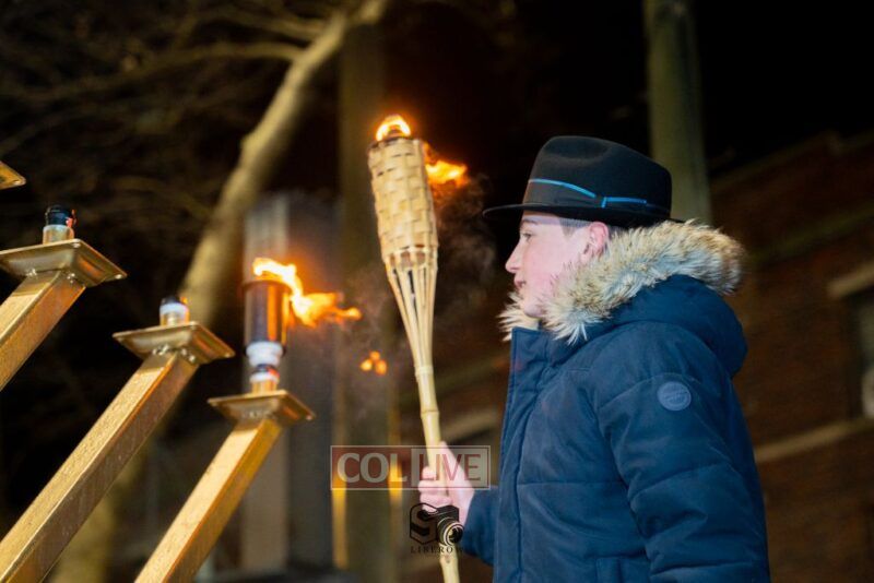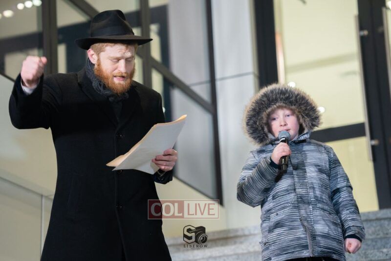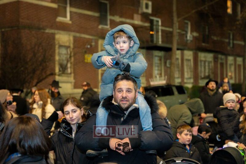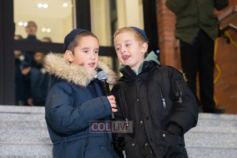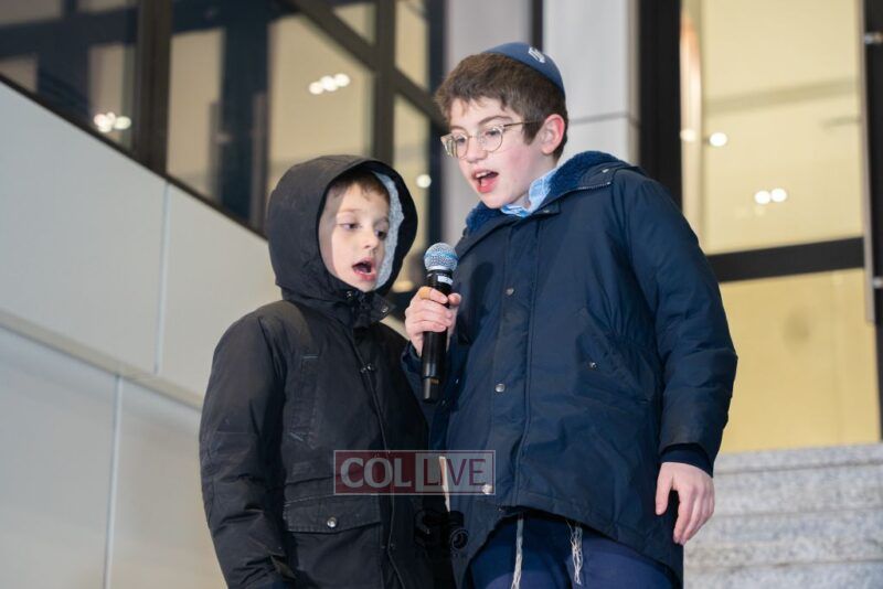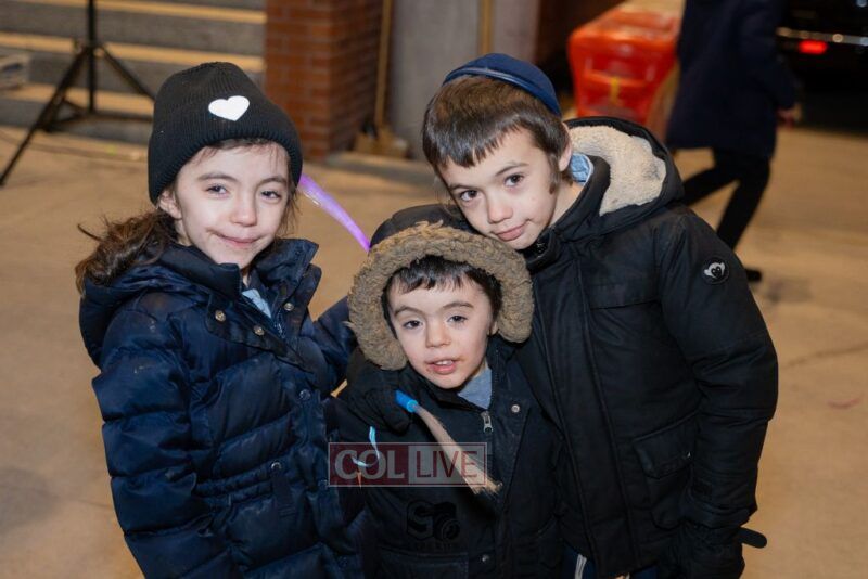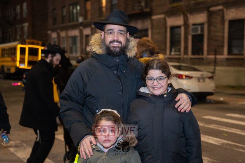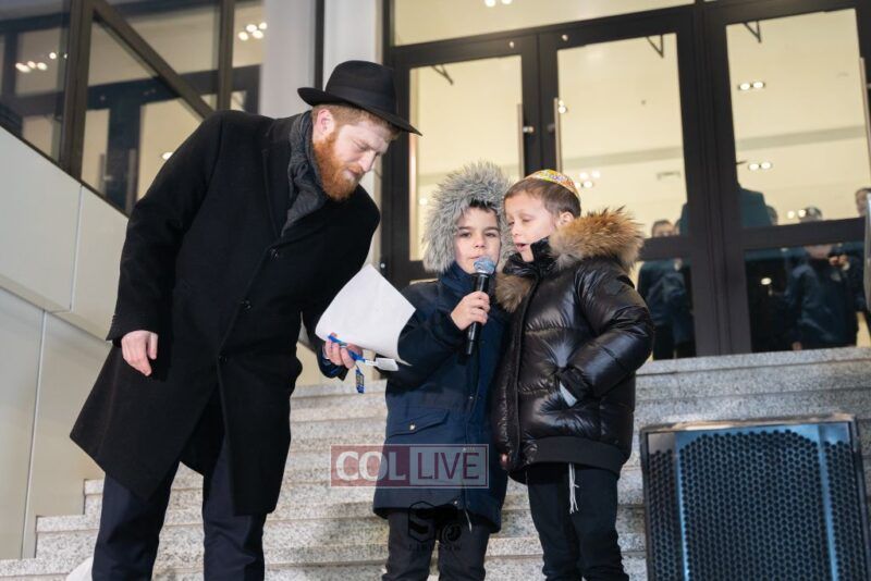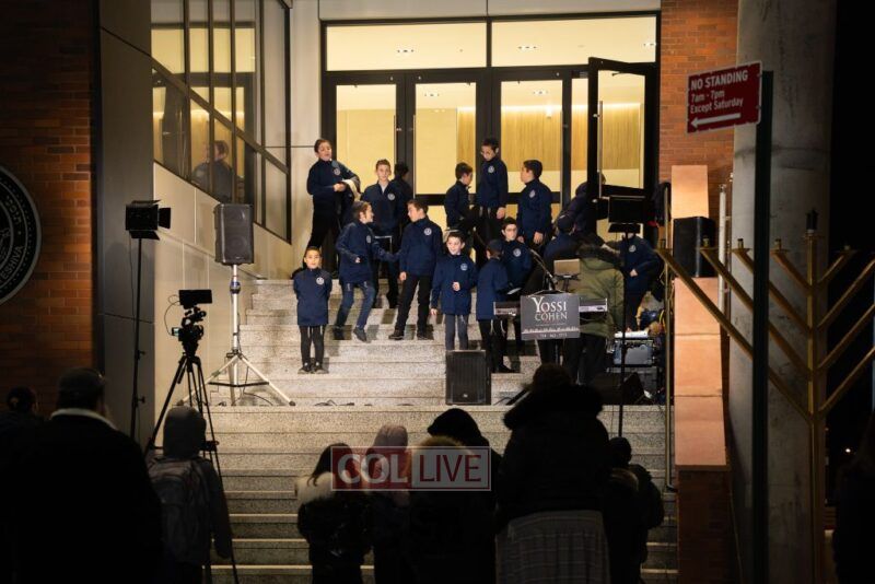 Hundreds joined a grand community-wide achdus Menorah Lighting event Thursday night, the first night of Chanukah, on Tomchei Temimim Way, hosted by Lubavitch Yeshiva in Crown Heights.
