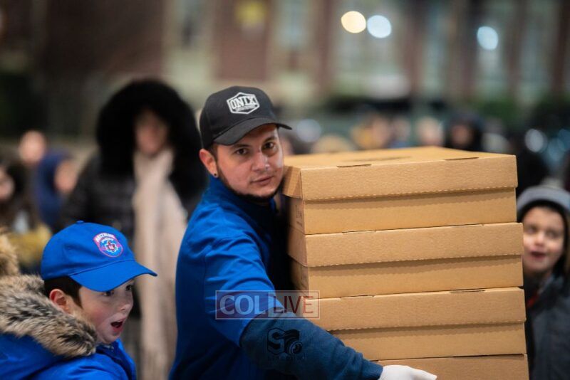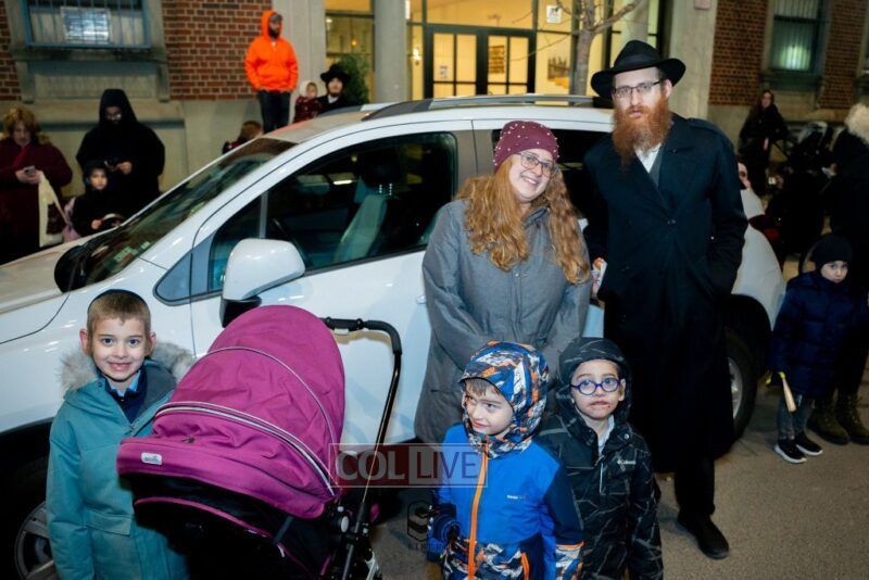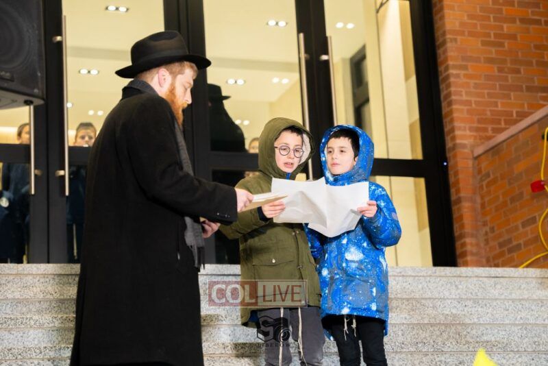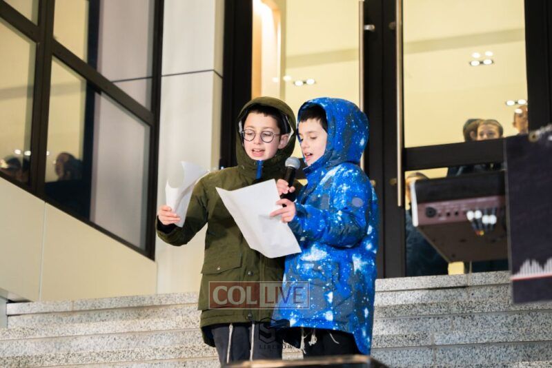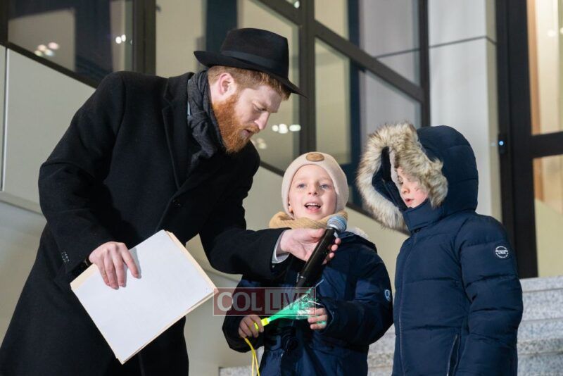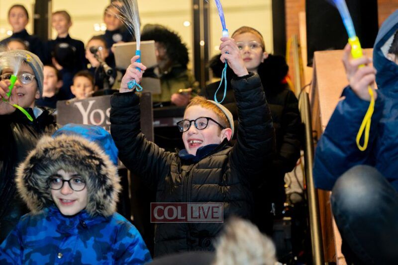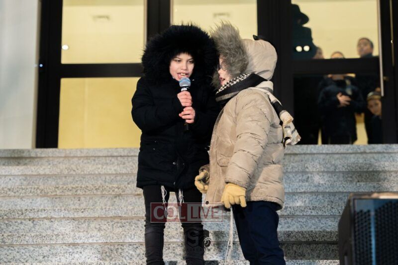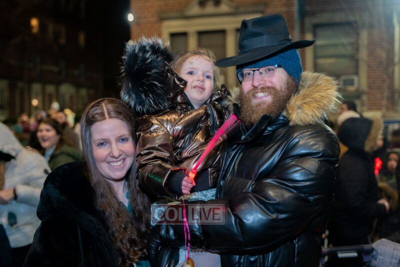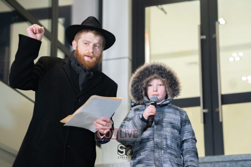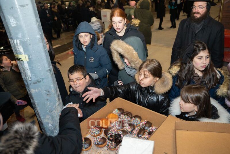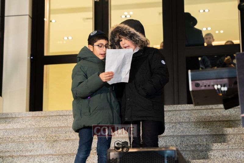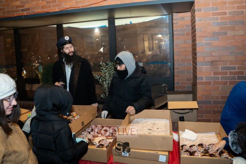 Hundreds joined a grand community-wide achdus Menorah Lighting event Thursday night, the first night of Chanukah, on Tomchei Temimim Way, hosted by Lubavitch Yeshiva in Crown Heights.