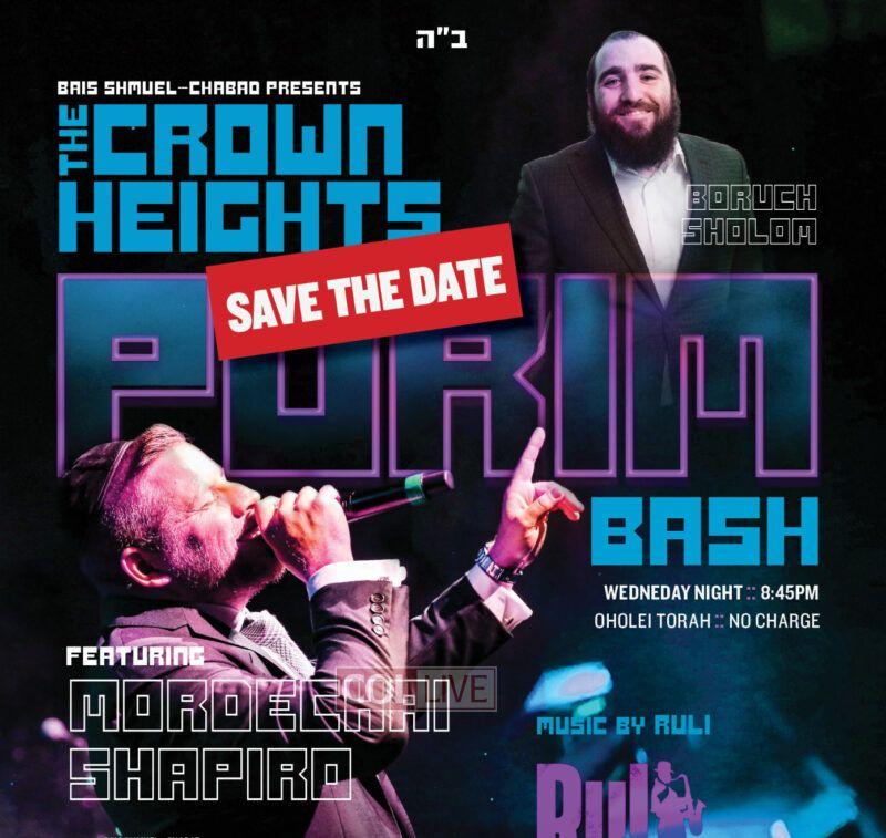 A festive Purim party is being organized in Crown Heights, with l’chaims, music and dancing.