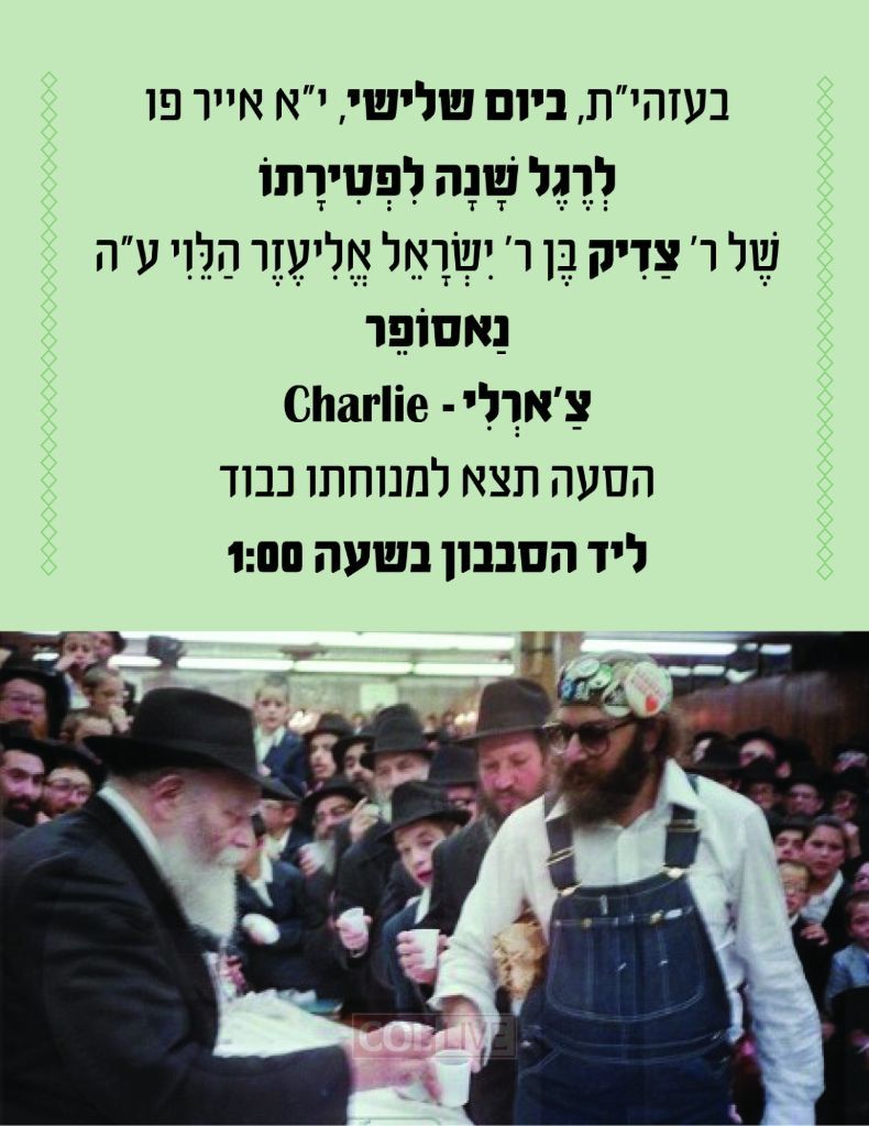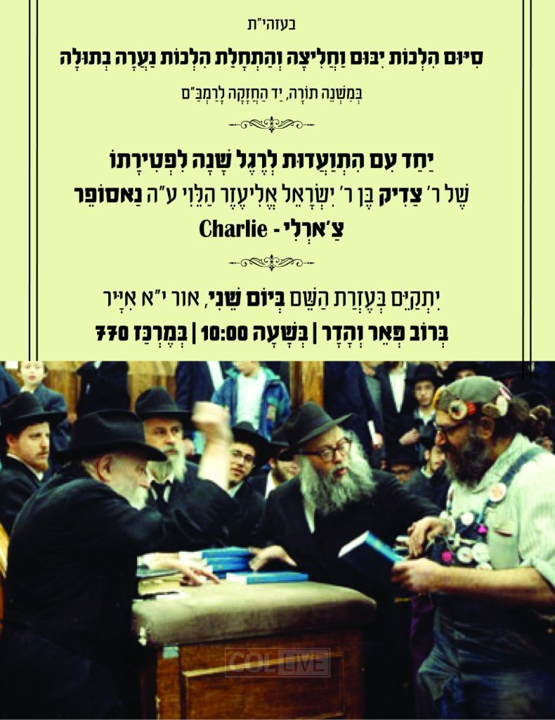 Members of Anash are invited to take part in marking the first yartzeit of Charlie Nassofer a”h, taking place on Yud Alef Iyar.