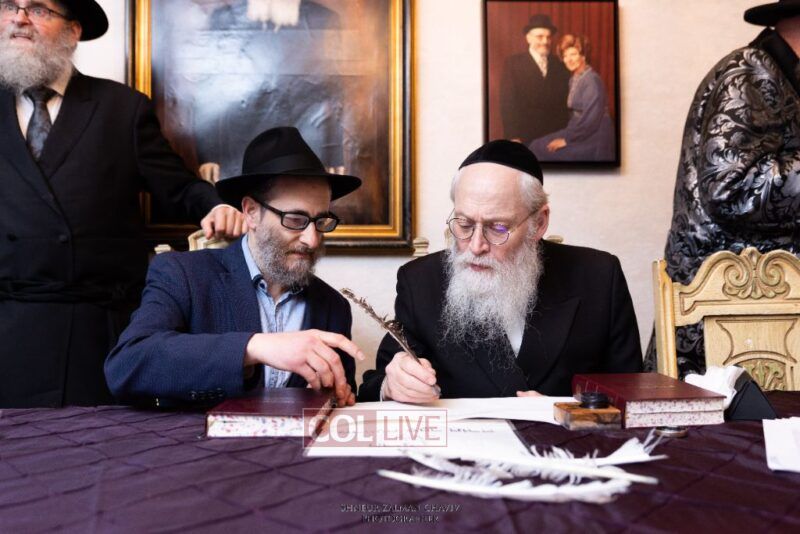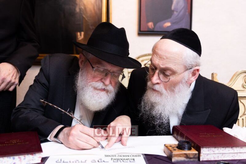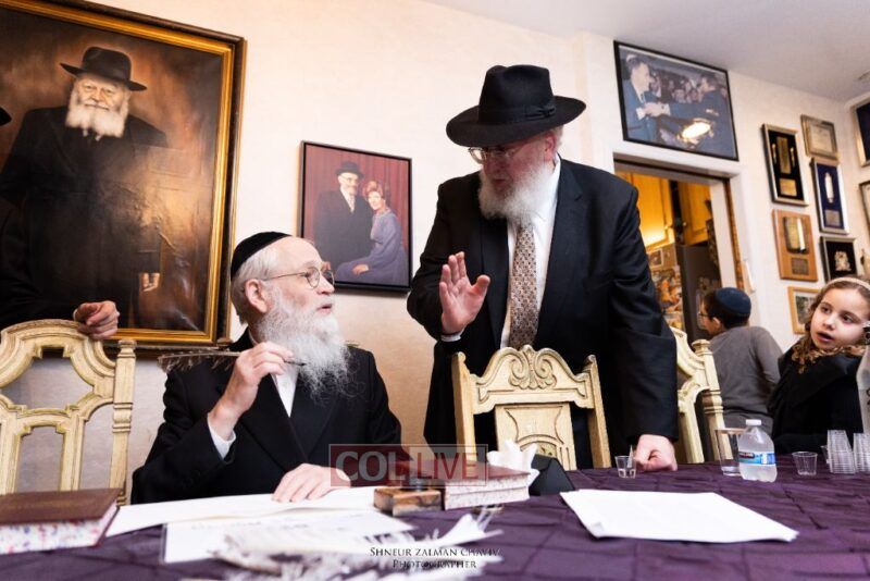 Family and friends of R’ Eli and Sara Blachman of Crown Heights gathered for the beginning of the writing of a new Sefer Torah on Wednesday.