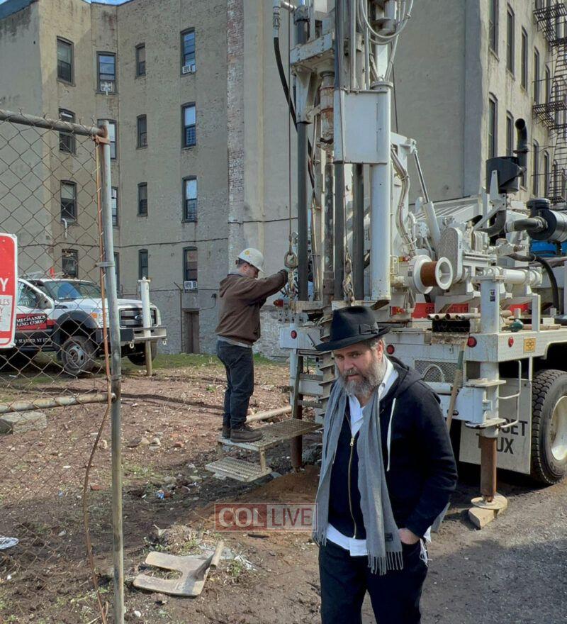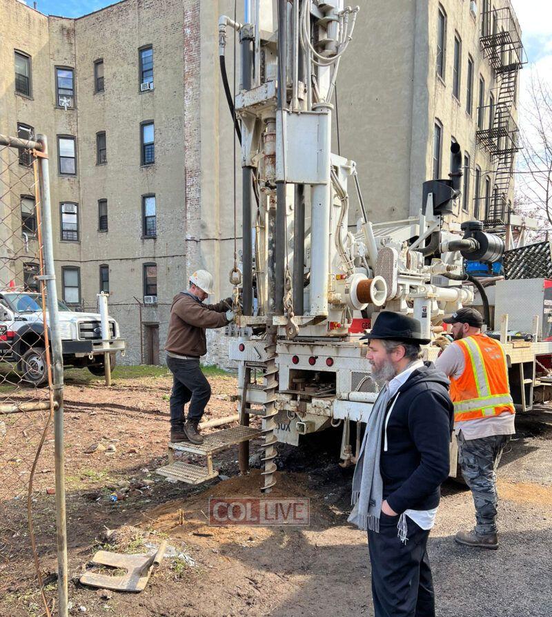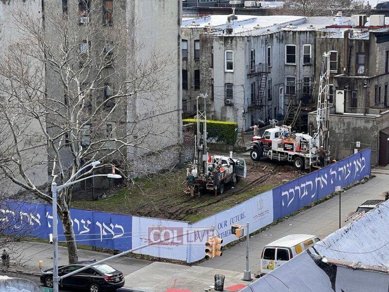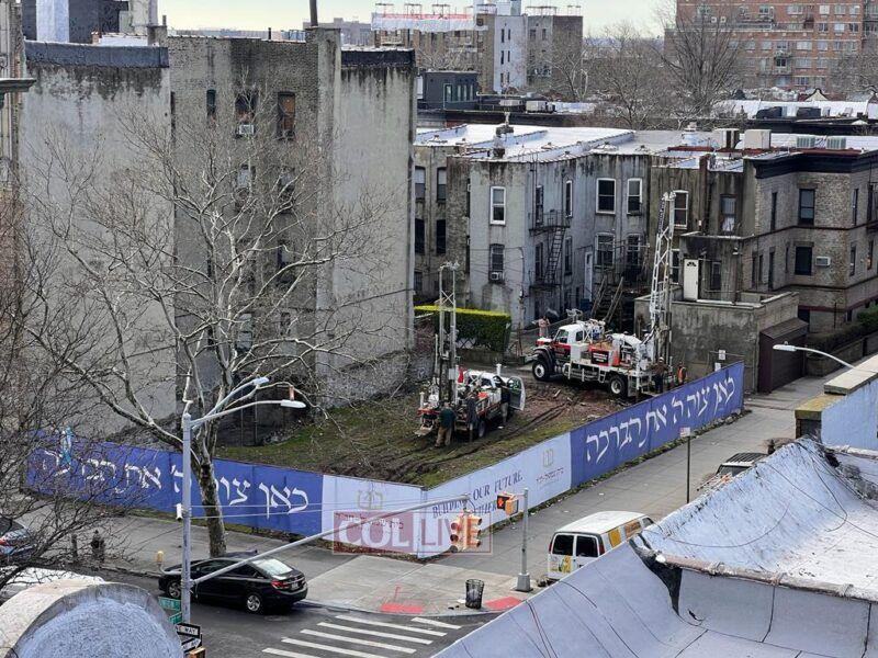 Crews were at the site of the planned Bais Shmuel Chabad building in Crown Heights on Friday, performing soil tests on the property.