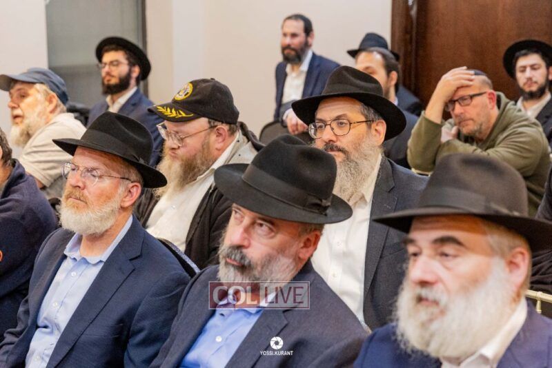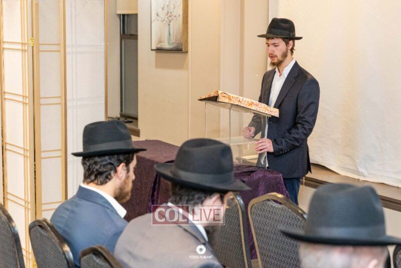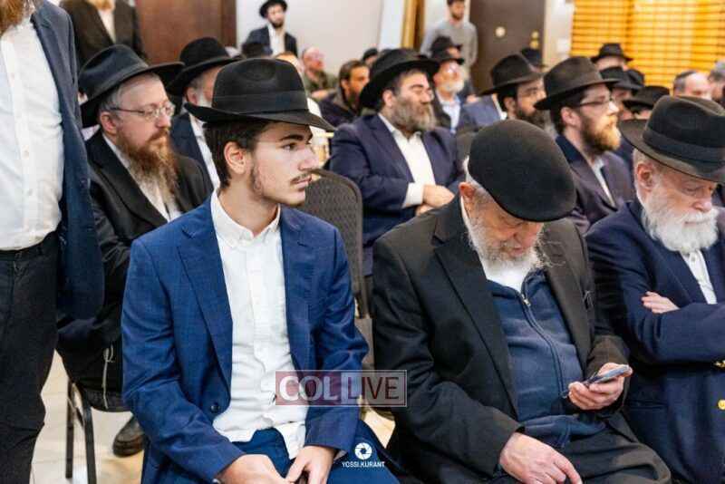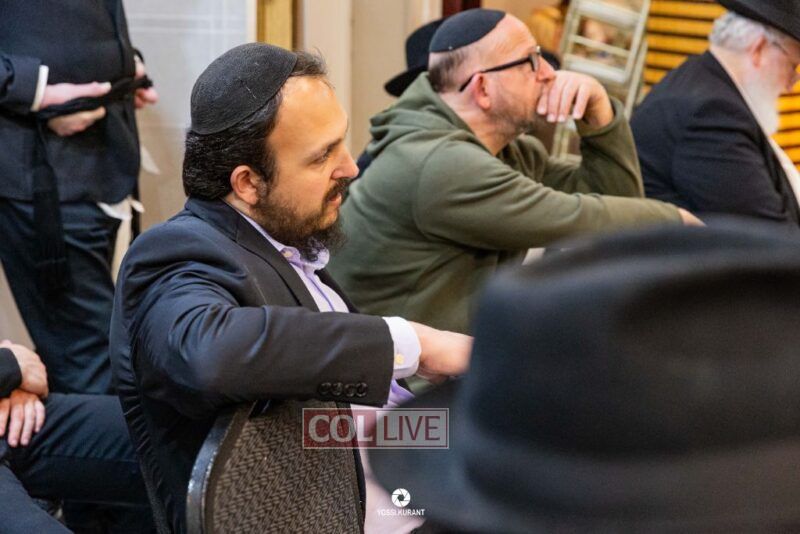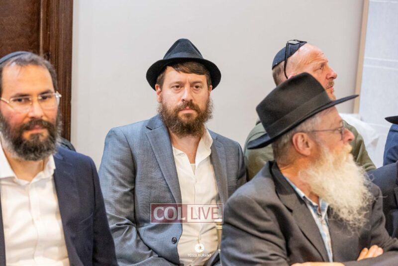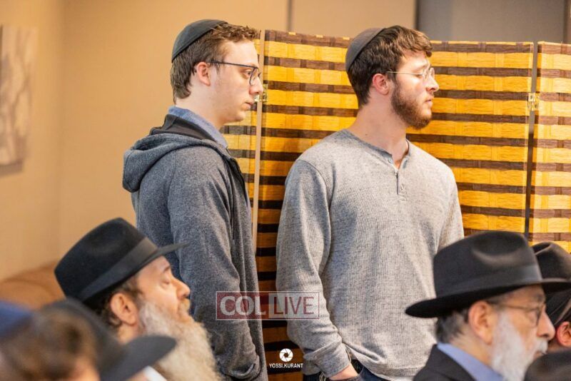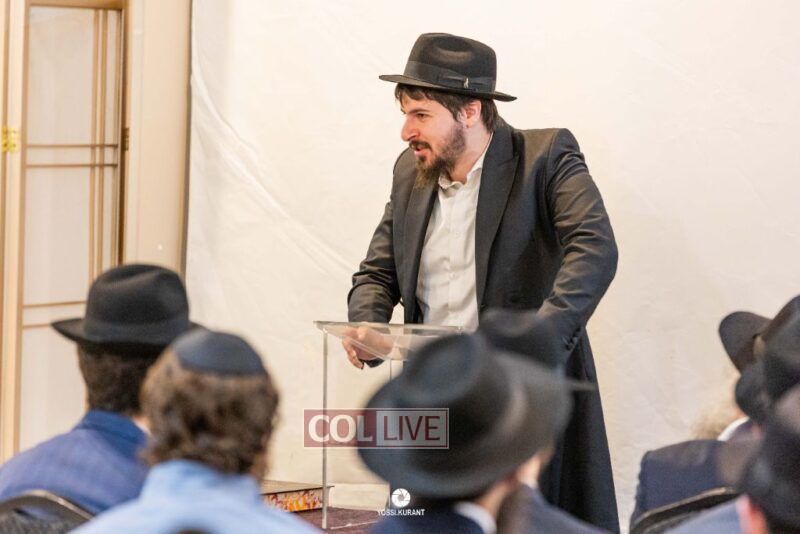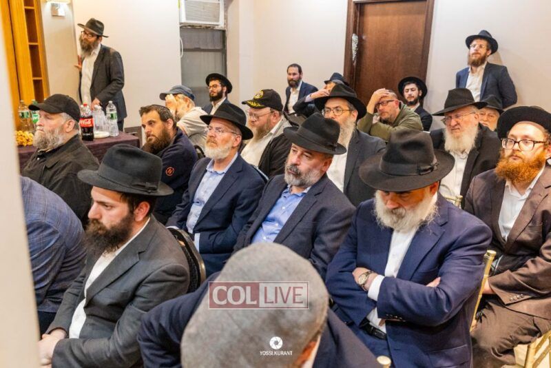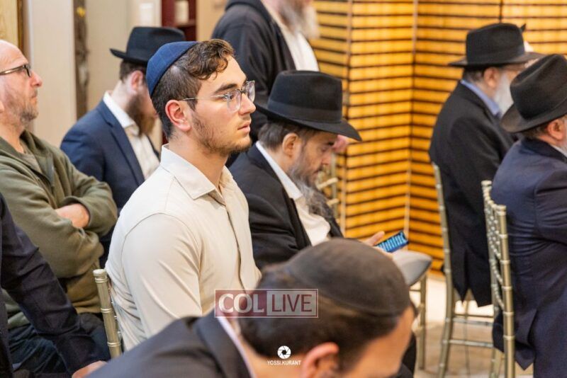 Family, friends, and community members gathered for a memorial event marking the Shloshim of Rabbi Mendy Raitport OBM on Sunday evening in Crown Heights.