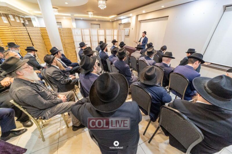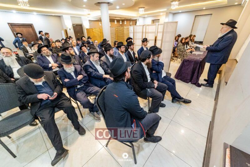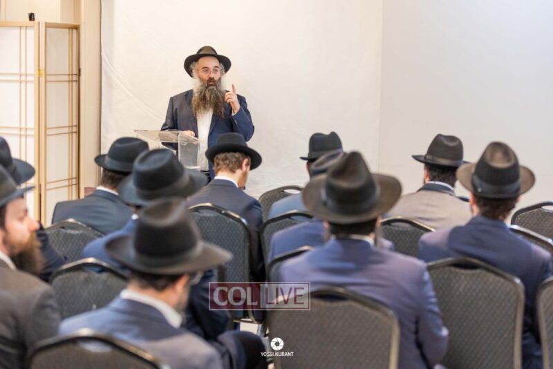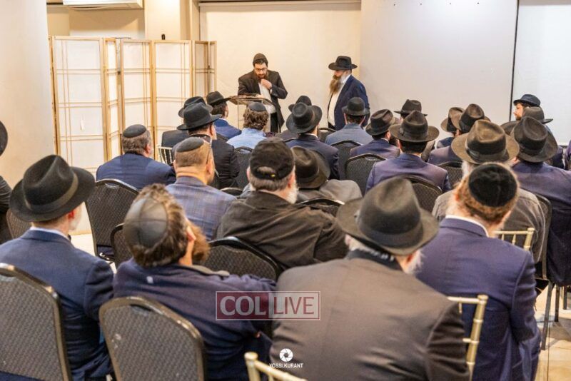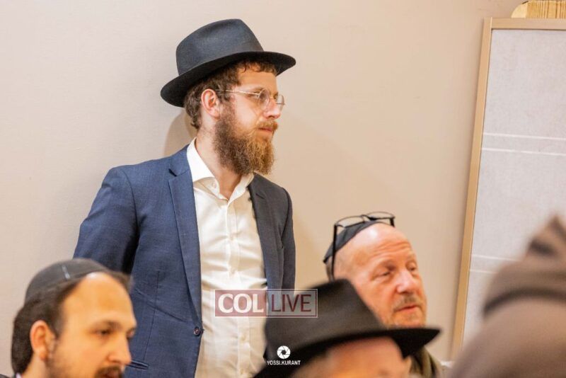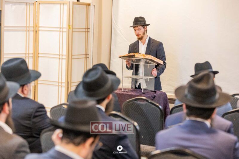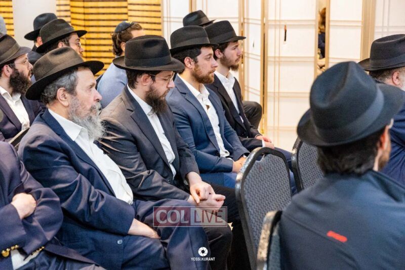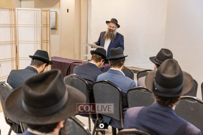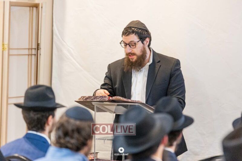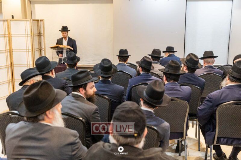 Family, friends, and community members gathered for a memorial event marking the Shloshim of Rabbi Mendy Raitport OBM on Sunday evening in Crown Heights.