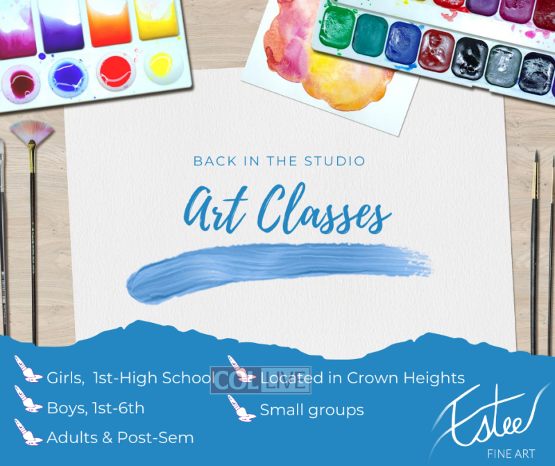 Artist Estee Klein has announced that art classes, live and in-person, will be resuming in September at her Crown Heights studio.