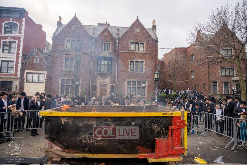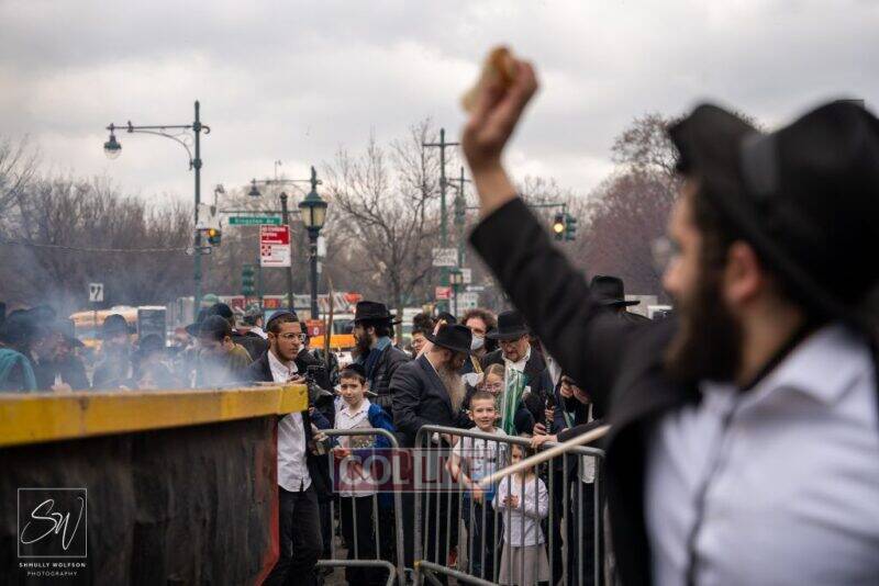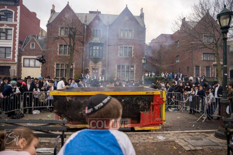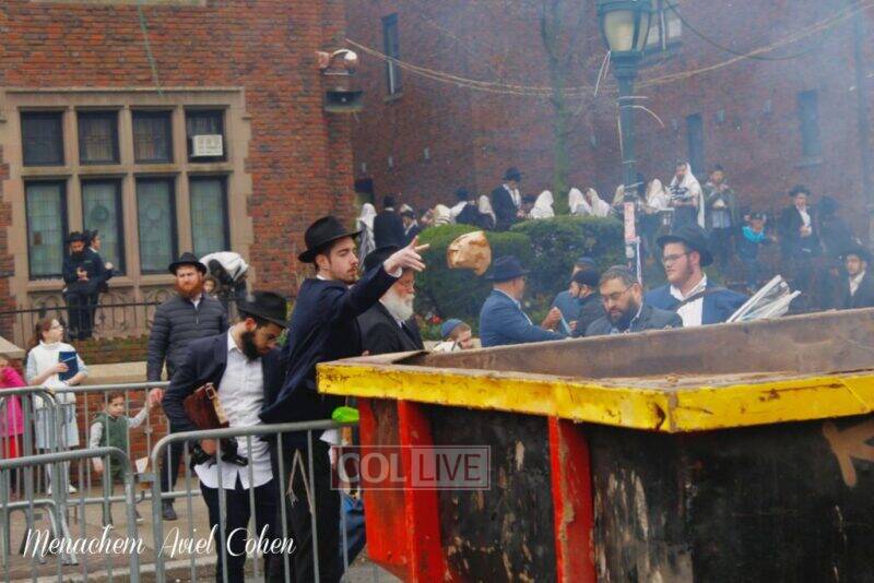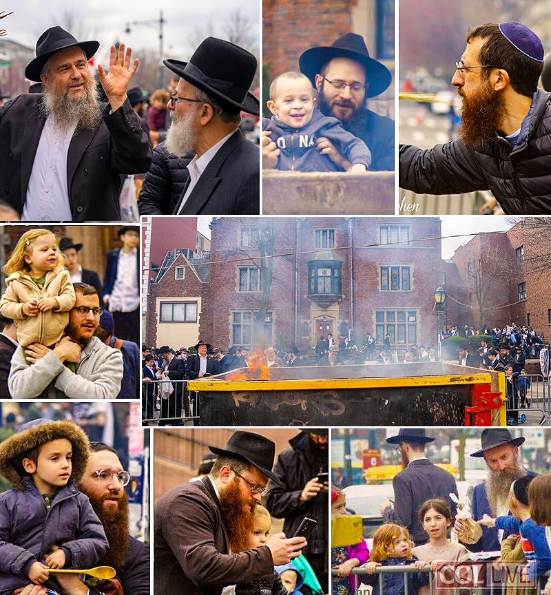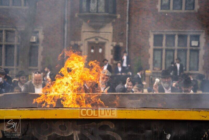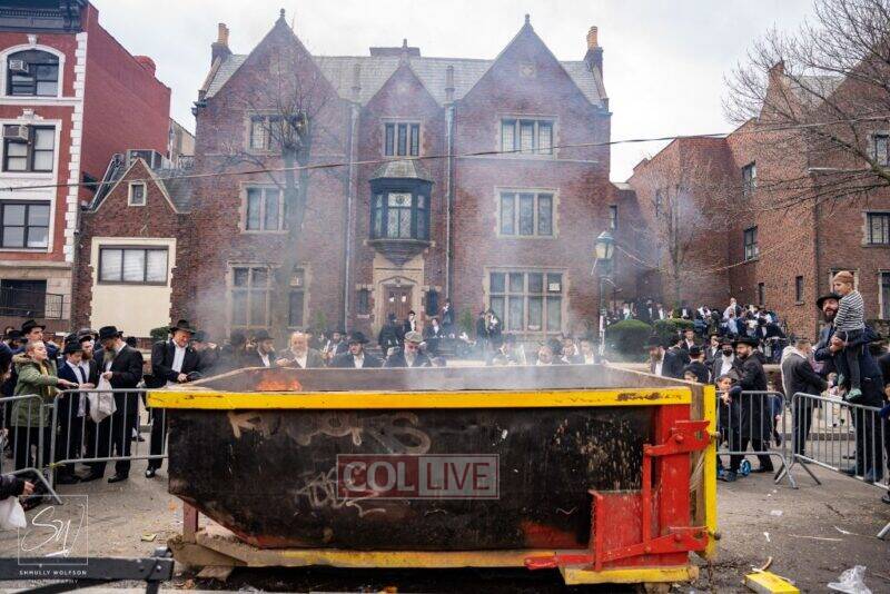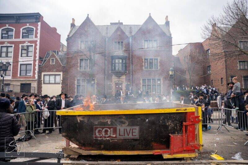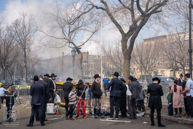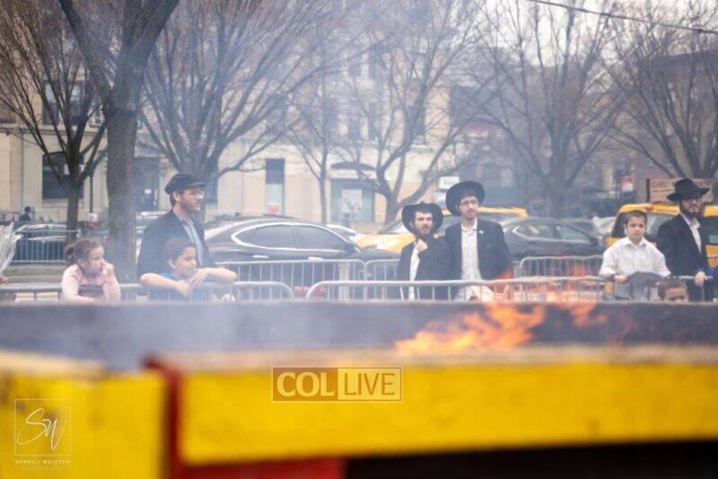 Crown Heights residents hurried Friday morning to burn their chometz in front of 770 Eastern Parkway. Photos