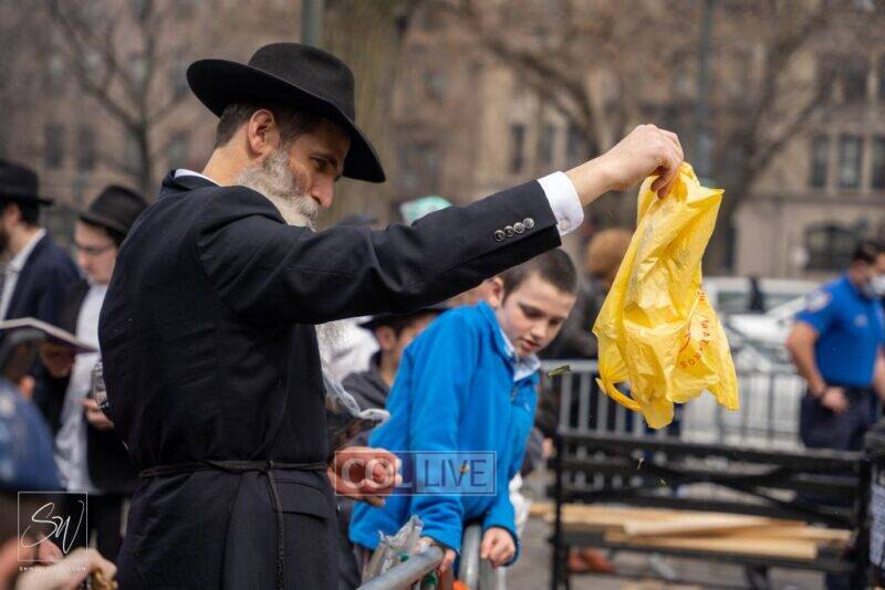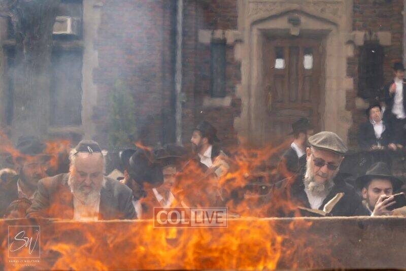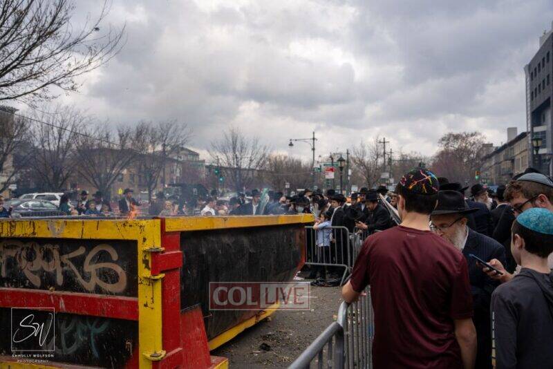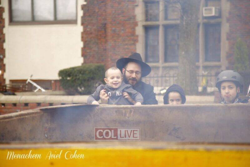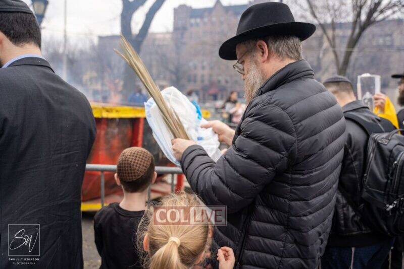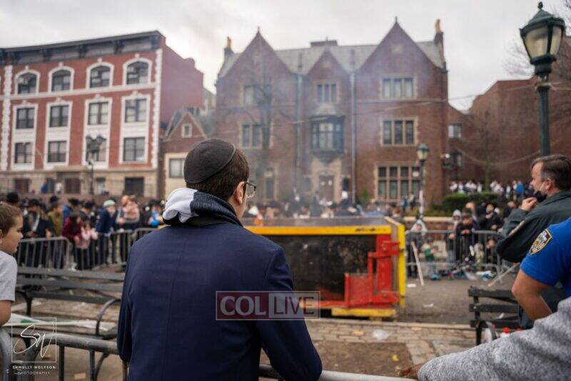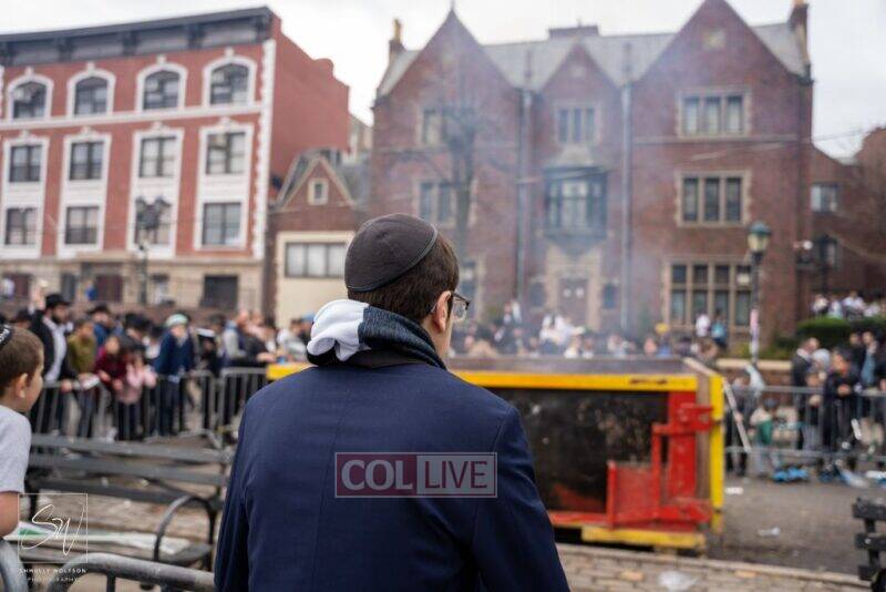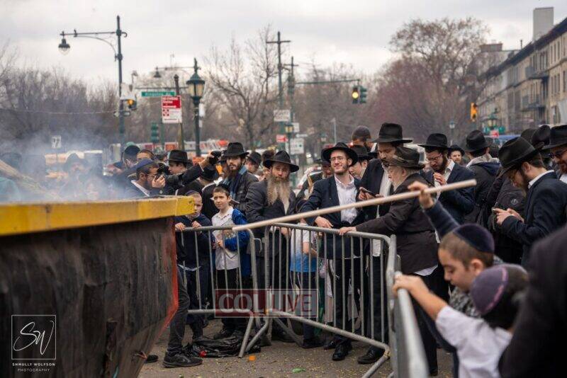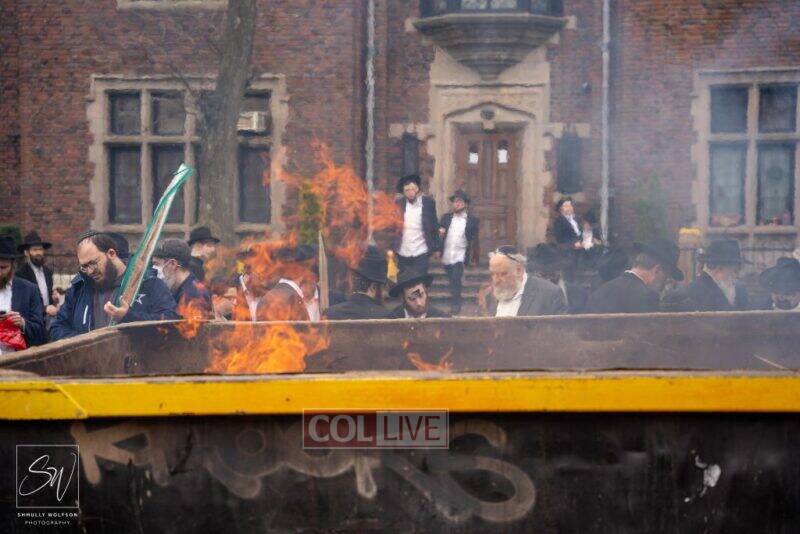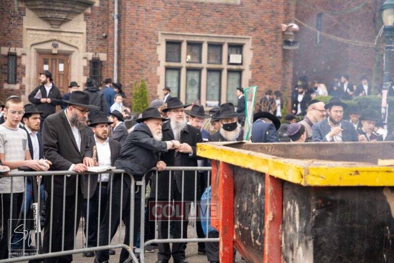 Crown Heights residents hurried Friday morning to burn their chometz in front of 770 Eastern Parkway. Photos
