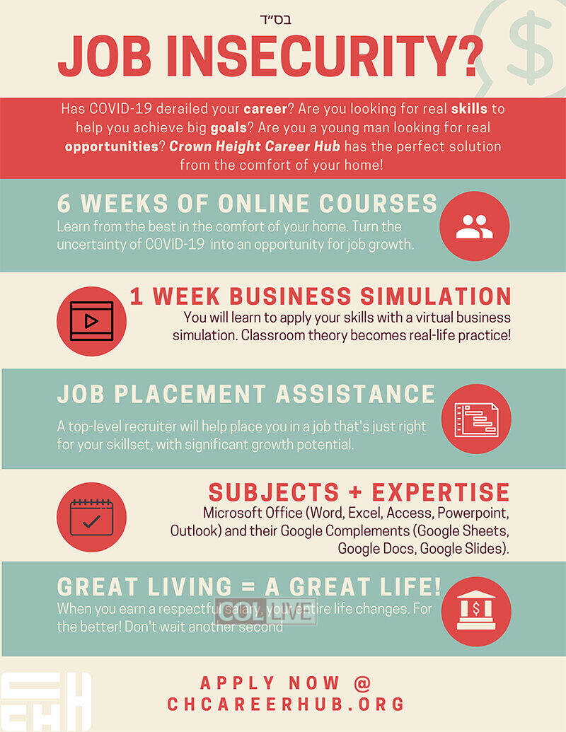 As the employment landscape has drastically changed, how will they earn a living? With schools and training programs closed, how will young Chabad men learn the necessary skills they need to support themselves and their families?