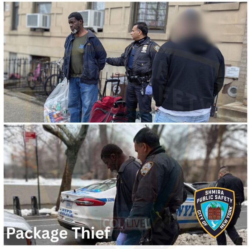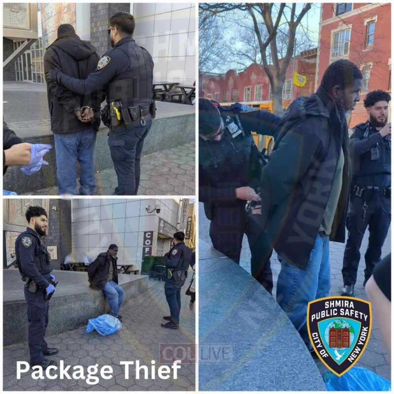 Package Thief Arrested: A wanted package thief was arrested today at approximately 4:45 PM near Albany Avenue and Eastern Parkway after an alert community member recognized him from Shmira’s wanted alert. Shmira responded to the scene and the suspect was placed under arrest by the NYPD.