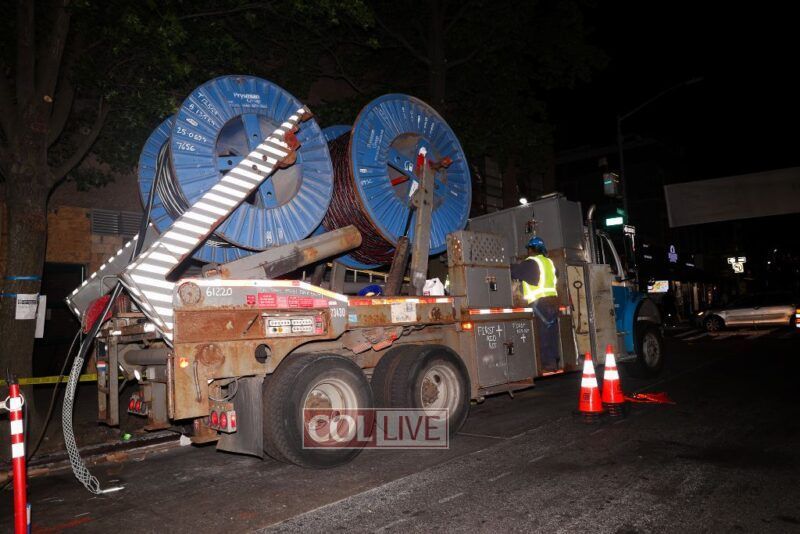 Crews were seen around the neighborhood all through the night Thursday into Friday, as Con Edison works to repair the electricity of thousands of customers after the recent blackouts caused by electrical fires.