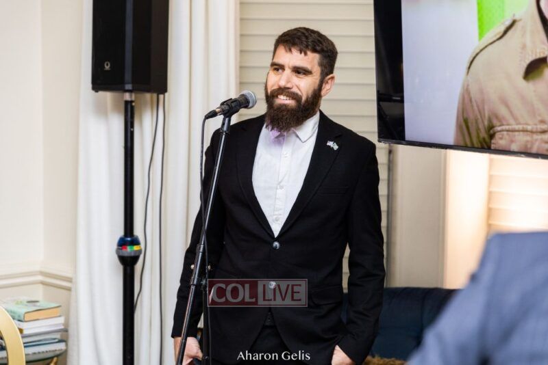 During the event, Eliyahu Gutman spoke about the work of the organization, and IDF soldier Mordechay Shenvald told of his miraculous survival from an injury he sustained during the current war with Hamas.