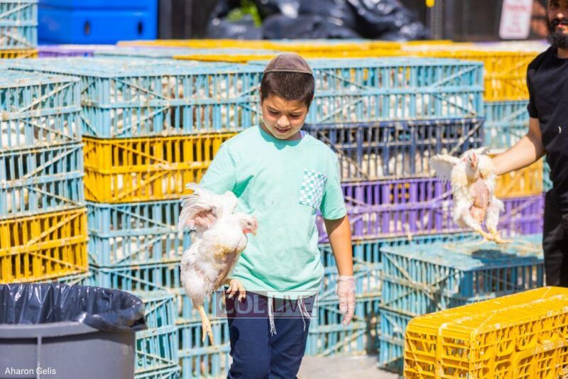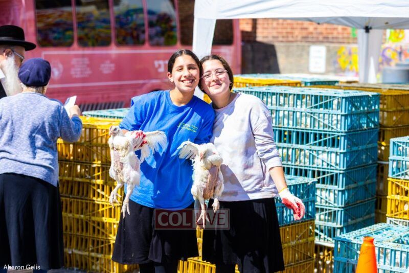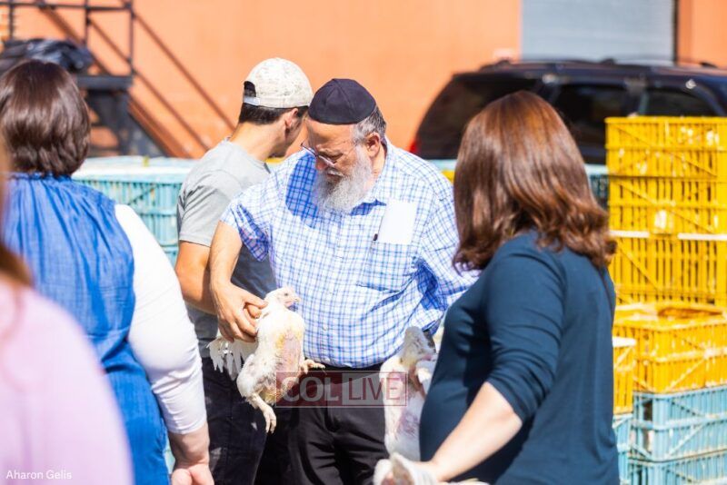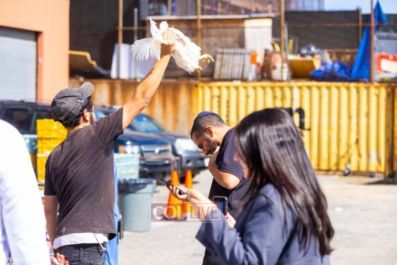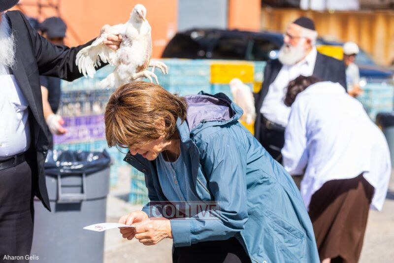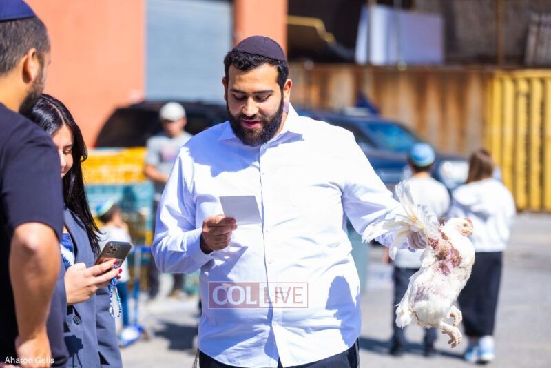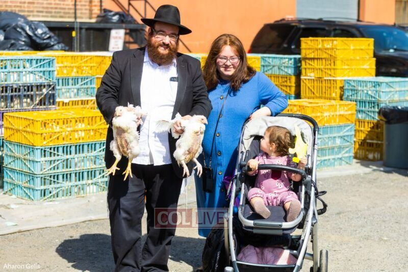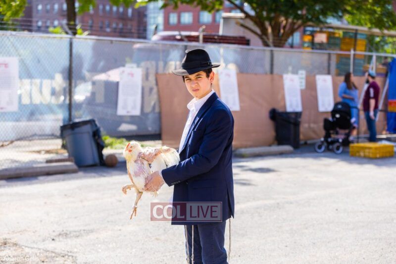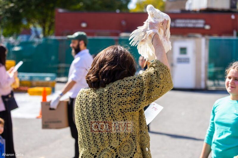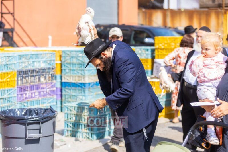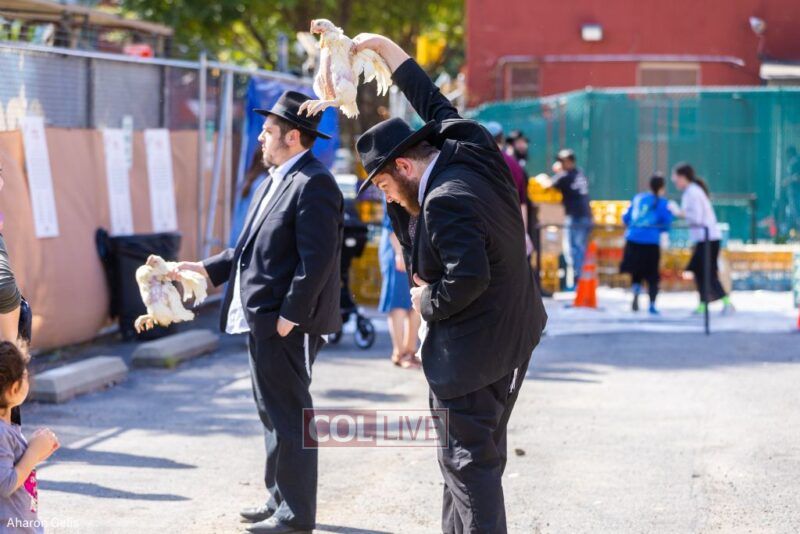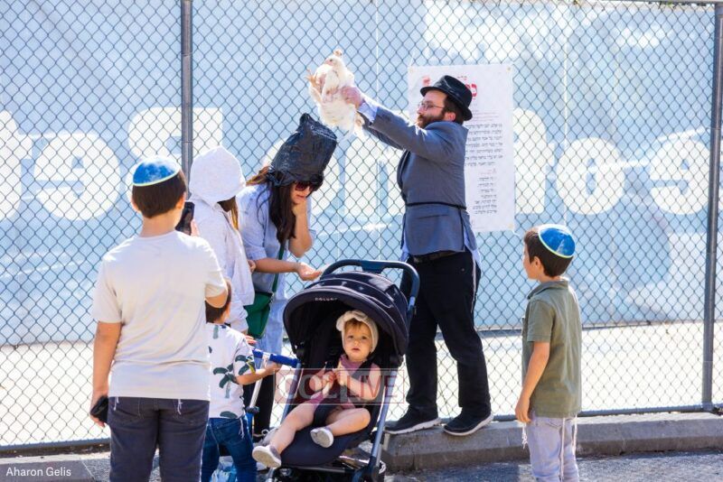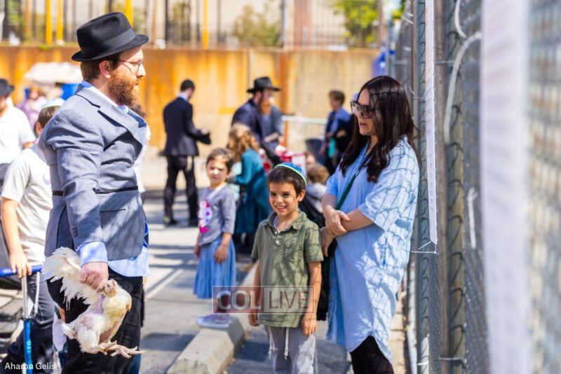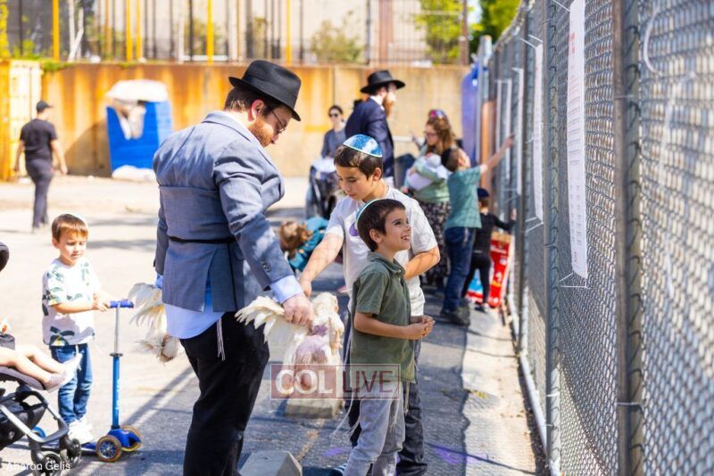 Families gathered to perform the Kapparos custom at Bais Rivka in Crown Heights Thursday organized by NCFJE and subsidized by donors. Photos