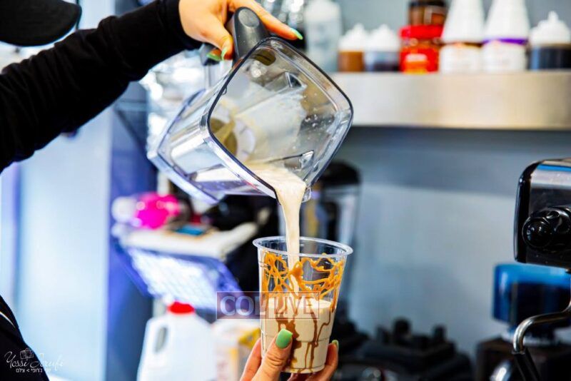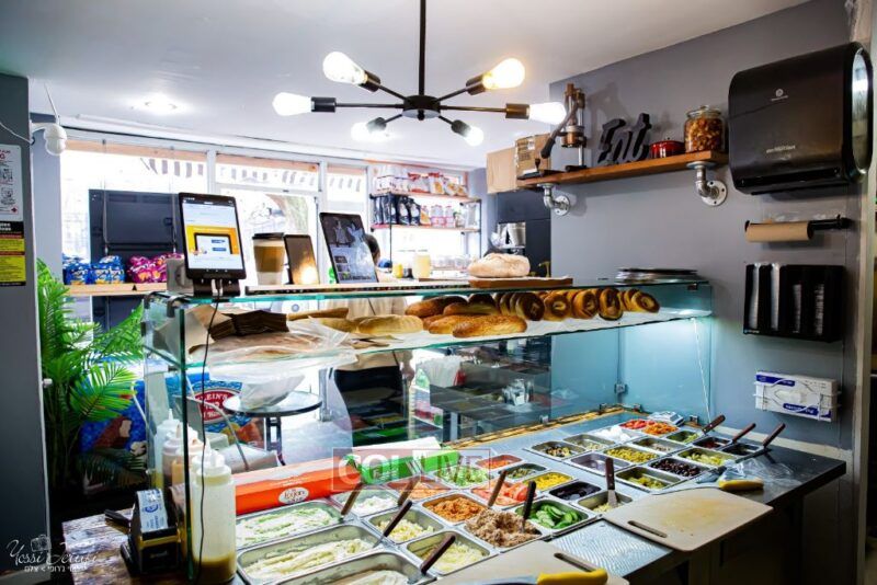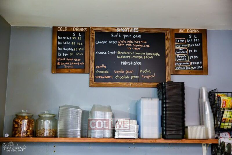 Though small in size, the shop offers a wide variety of dishes, including a traditional Israeli breakfast that includes a spread of cheeses and dips, the type one might find at an Israeli cafe in Yerushalayim or Tzfas.