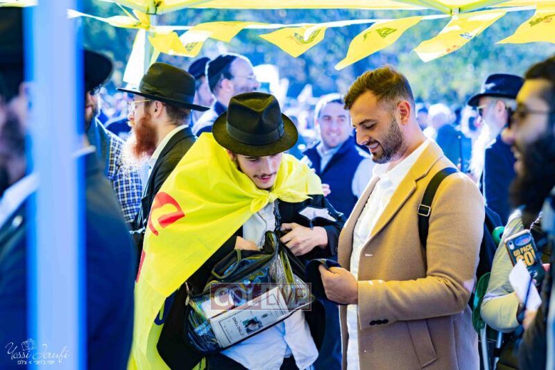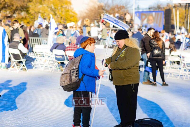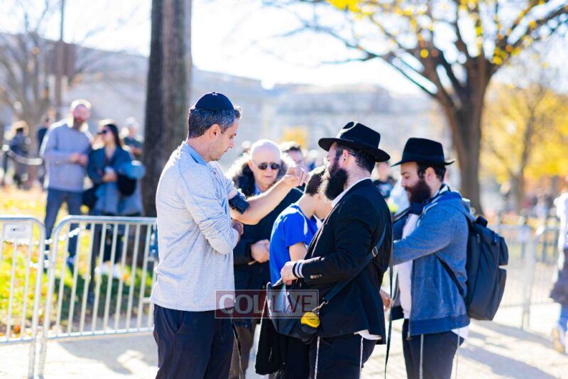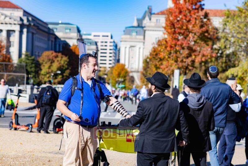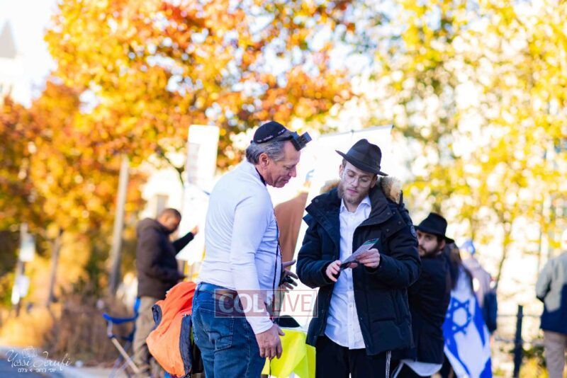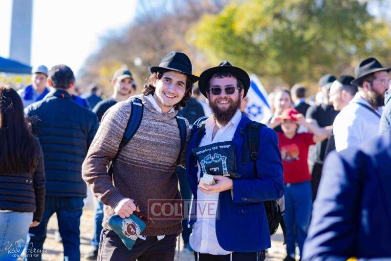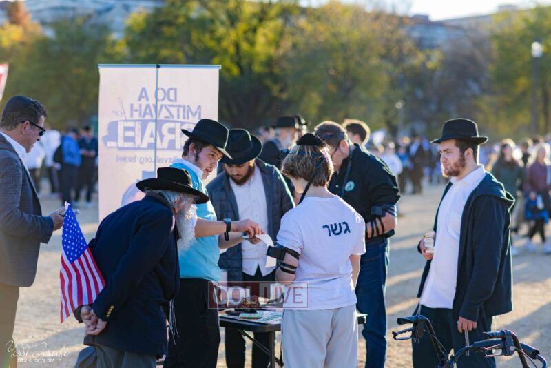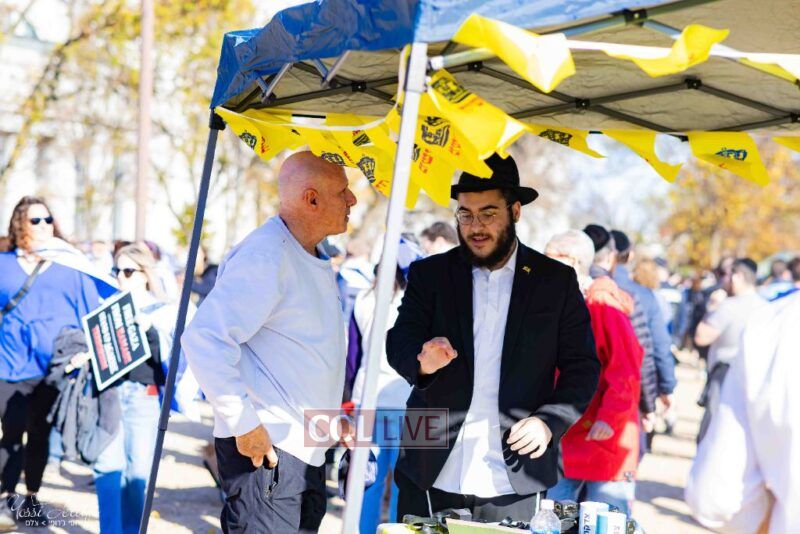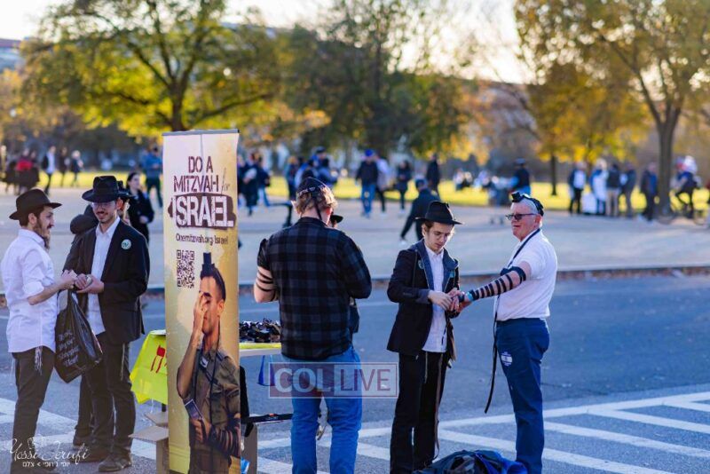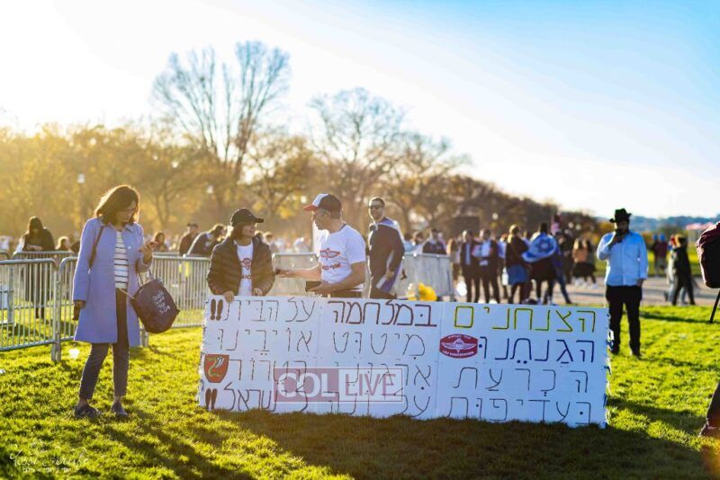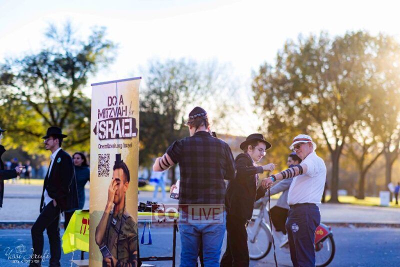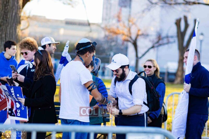 Beyond personally attending, the Lubavitchers from Crown Heights and elsewhere did Mivtzoim, helping rally participants to do a Mitzvah for Israel.