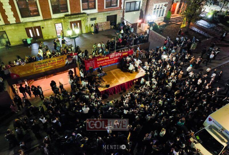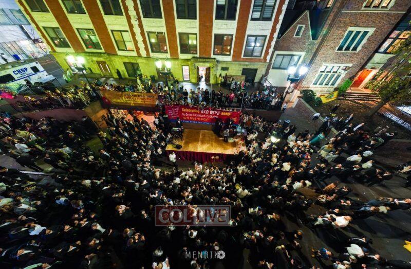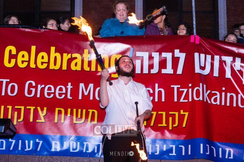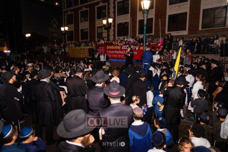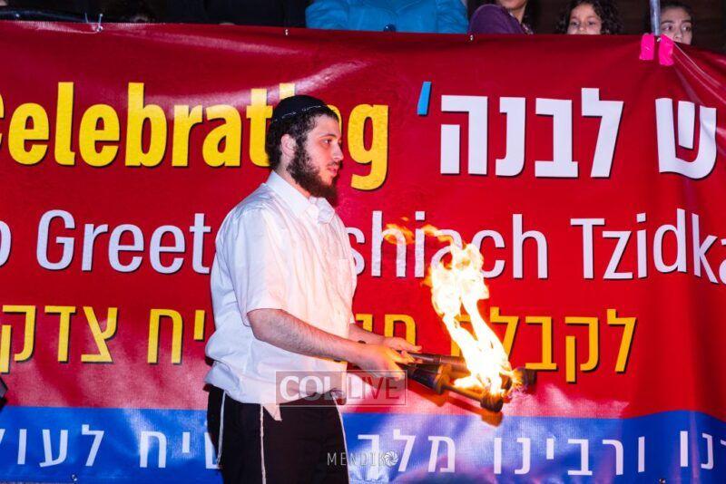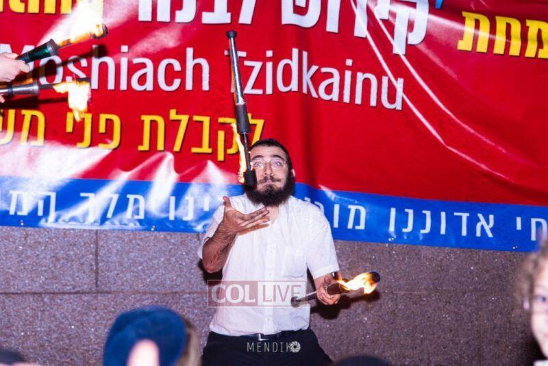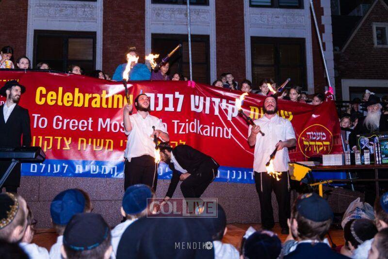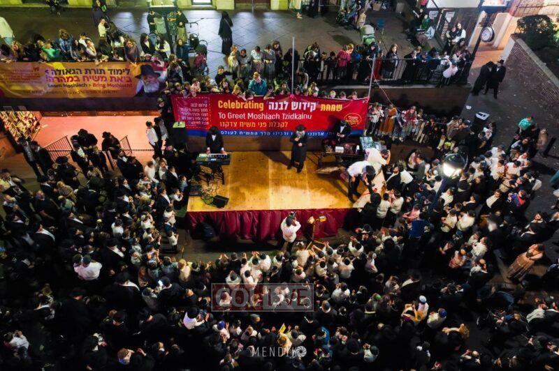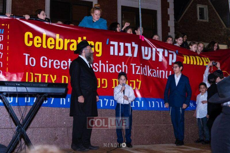 A large crowd celebrated Kiddush Levana with joyous dancing, live music and entertainment in front of 770 Eastern Parkway on Motzei Shabbos. Photos