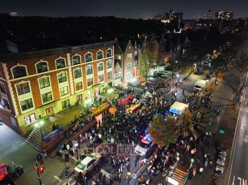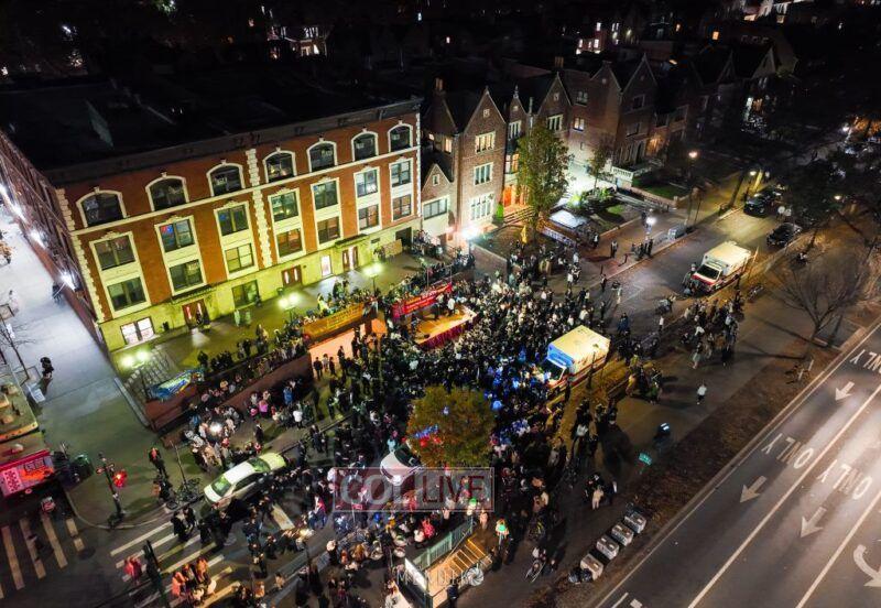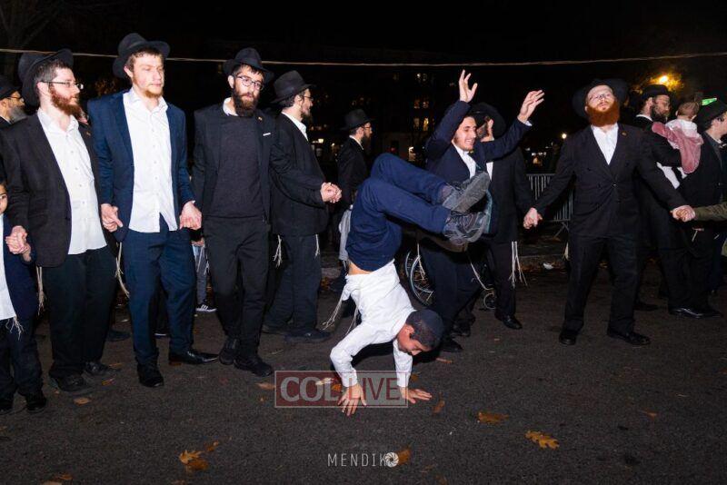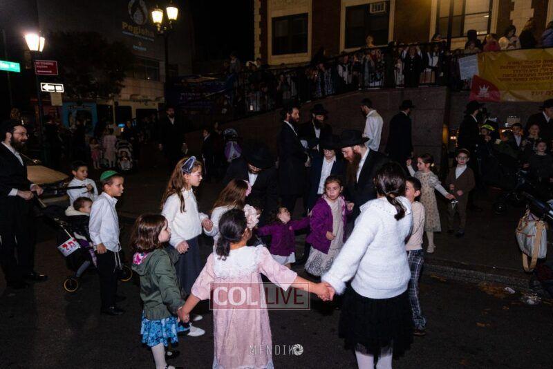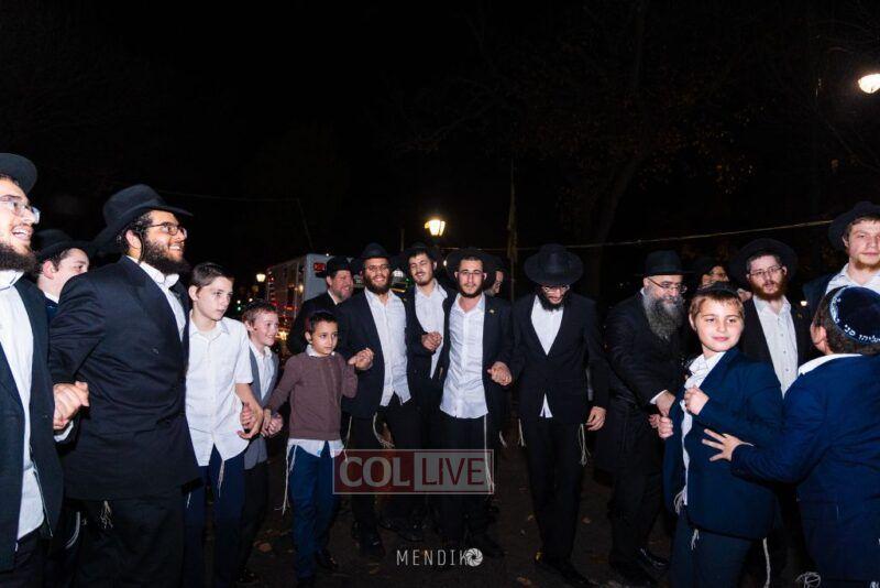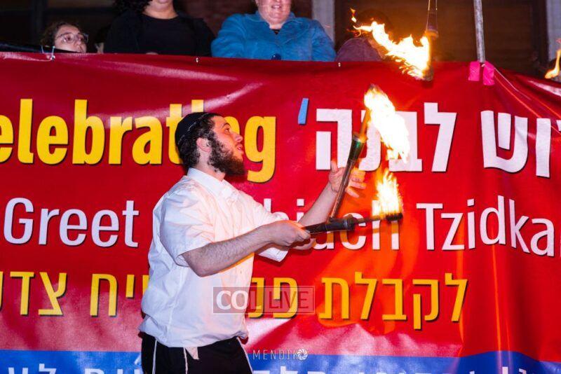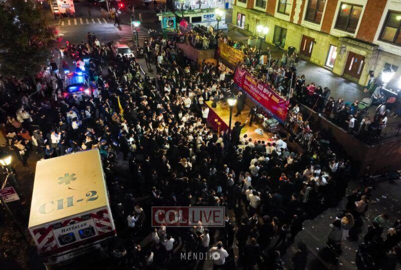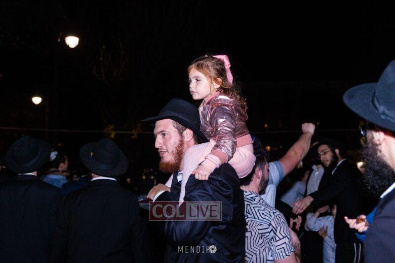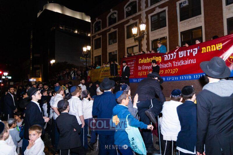 A large crowd celebrated Kiddush Levana with joyous dancing, live music and entertainment in front of 770 Eastern Parkway on Motzei Shabbos. Photos