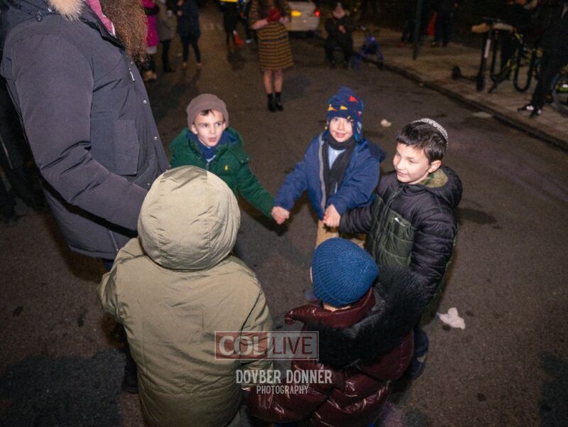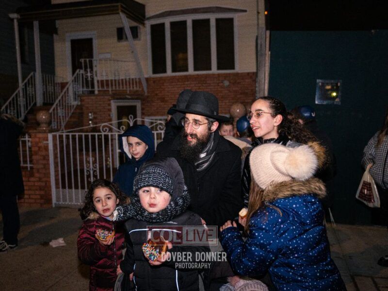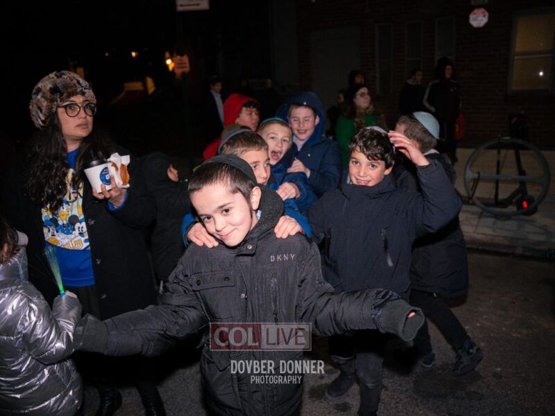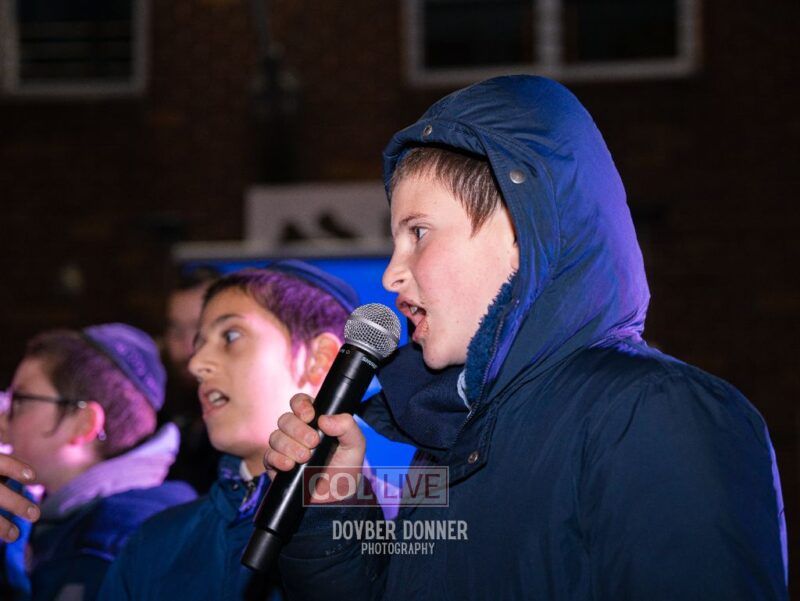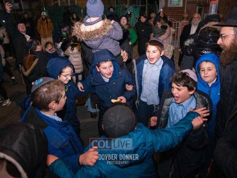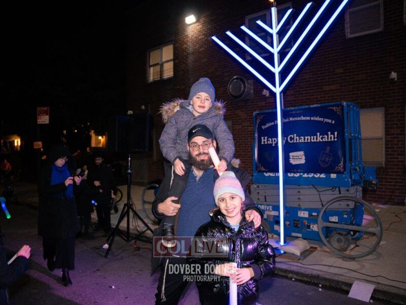 Families of Darchai Menachem students gathered for a grand Menorah lighting event on the first night of Chanukah, enjoying donuts, dancing, a performance by Darchai Menachem boys choir and music by Mendy Kraus. Photos