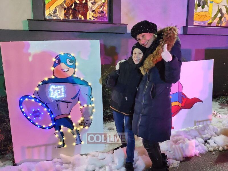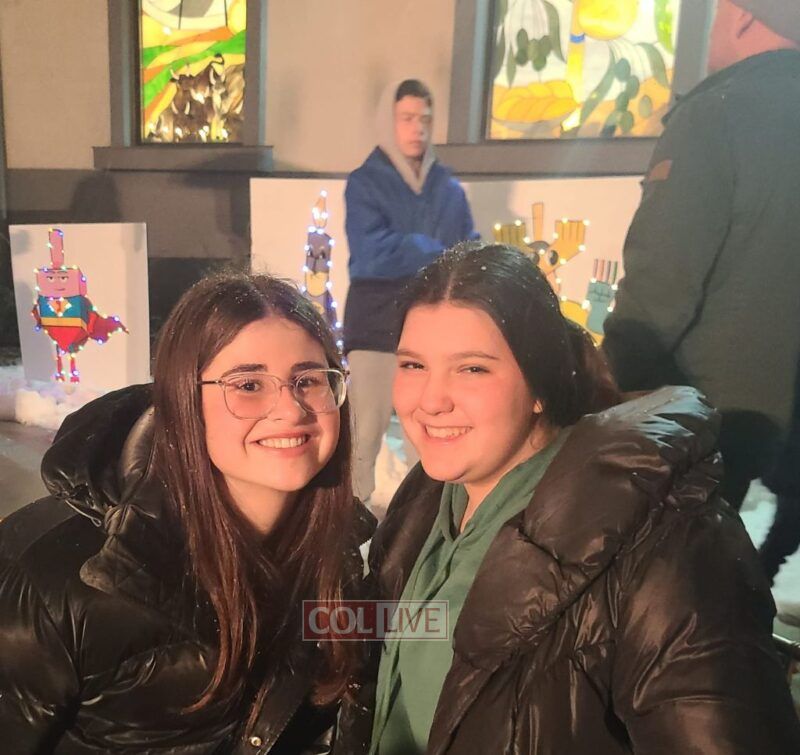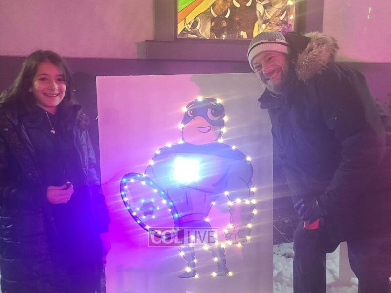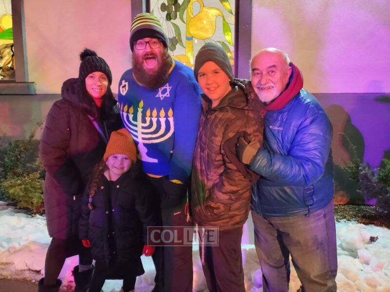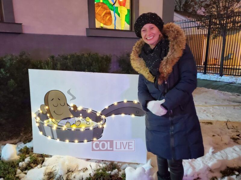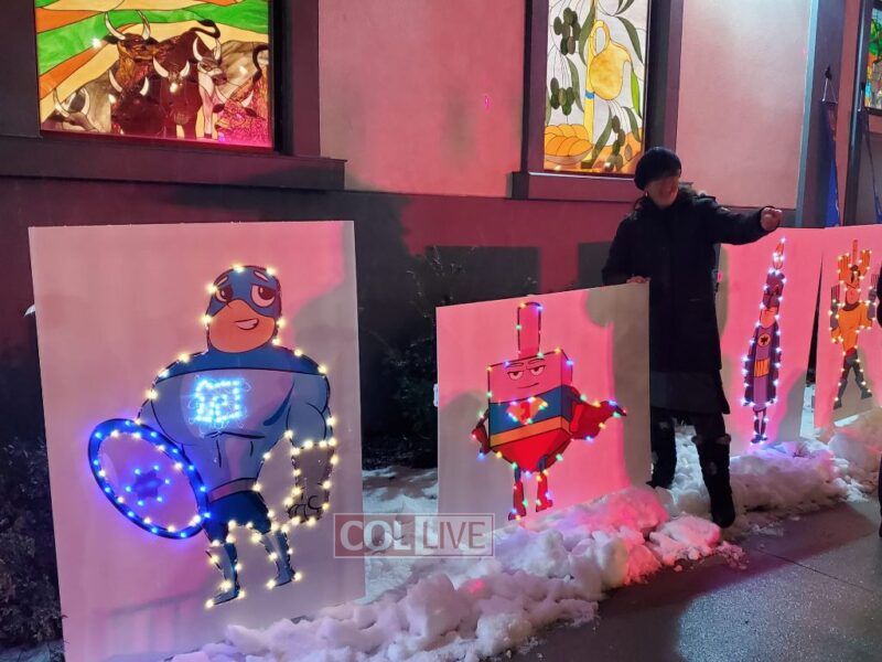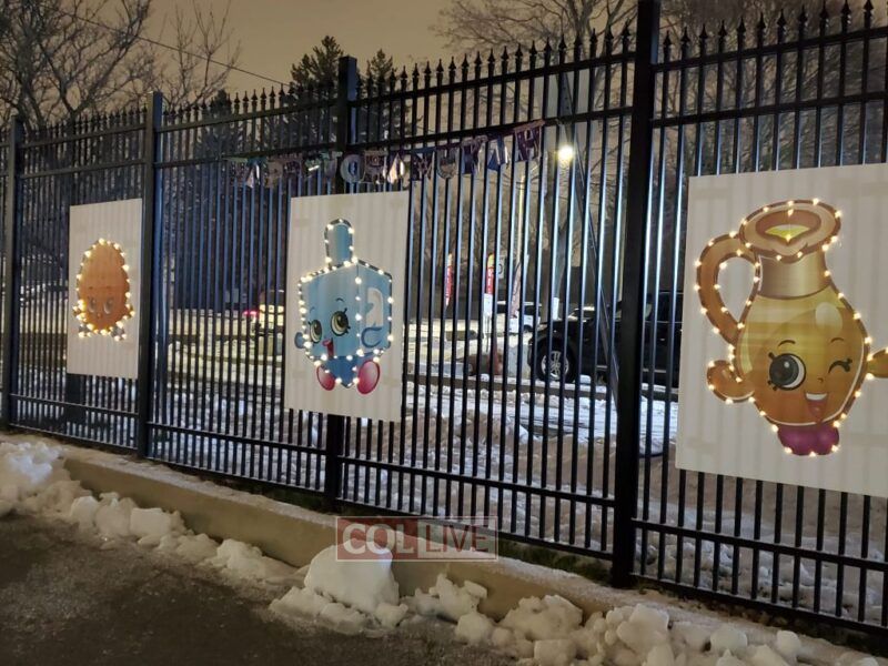 This is how it unfolded. On Sunday night, the first night of Chanukah, hundreds of people arrived at the front terrace of Chabad facing the main street and they were blown away by what they saw. There in front of their eyes was a one-of-a-kind Jewish Garden of Lights replete with sparkling lights and Chanukah signs and characters lighting up the night.