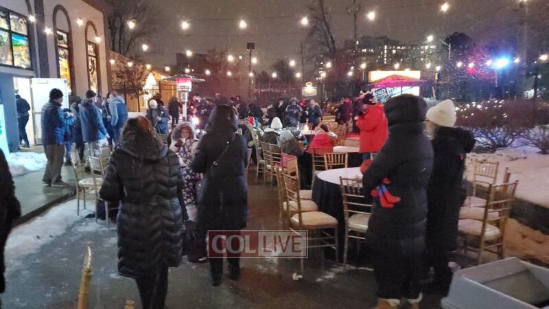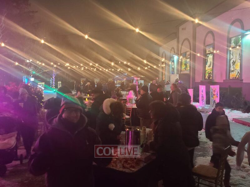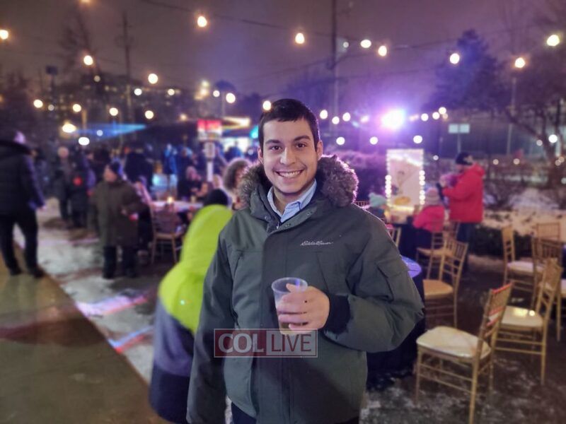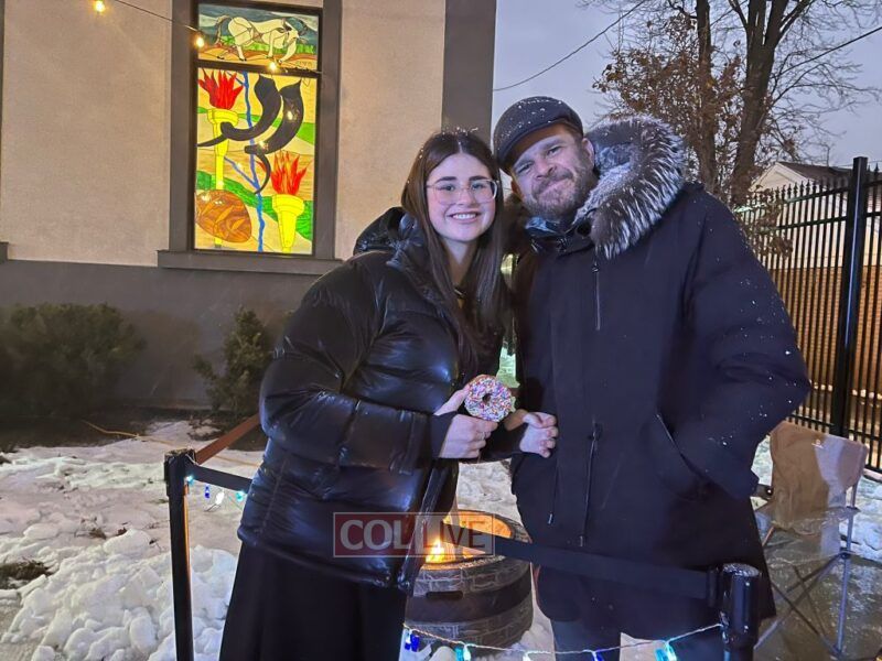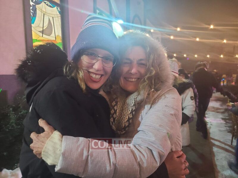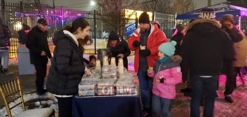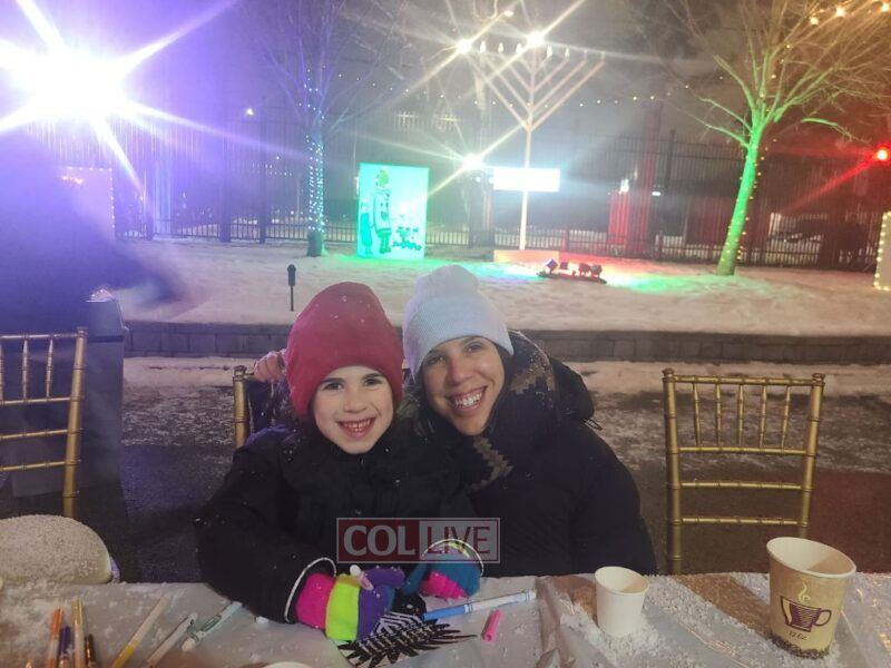In the center was a food court with round decorated tables interspersed with hot dog booths, hot Cocoa, assorted hot soups, sufganiyot and beer stations. In the background, there was soft Chanukah music creating just the right atmosphere. Further up was a town square with a village glassblower preparing little Chanukah trinkets and Menorah and an arts and crafts table with Chanukah art specialties that was prepared for the kids. The snow was falling but no one worried because the outdoor heaters were circulating warm air and an indoor warmup center was opened for the elderly.