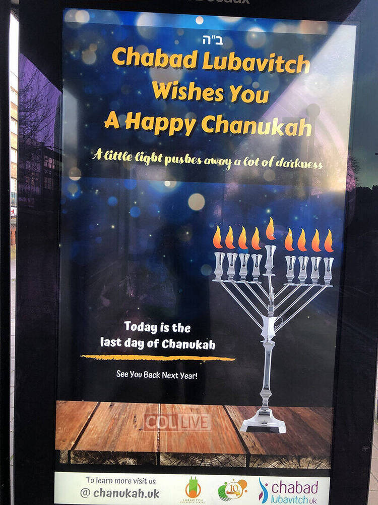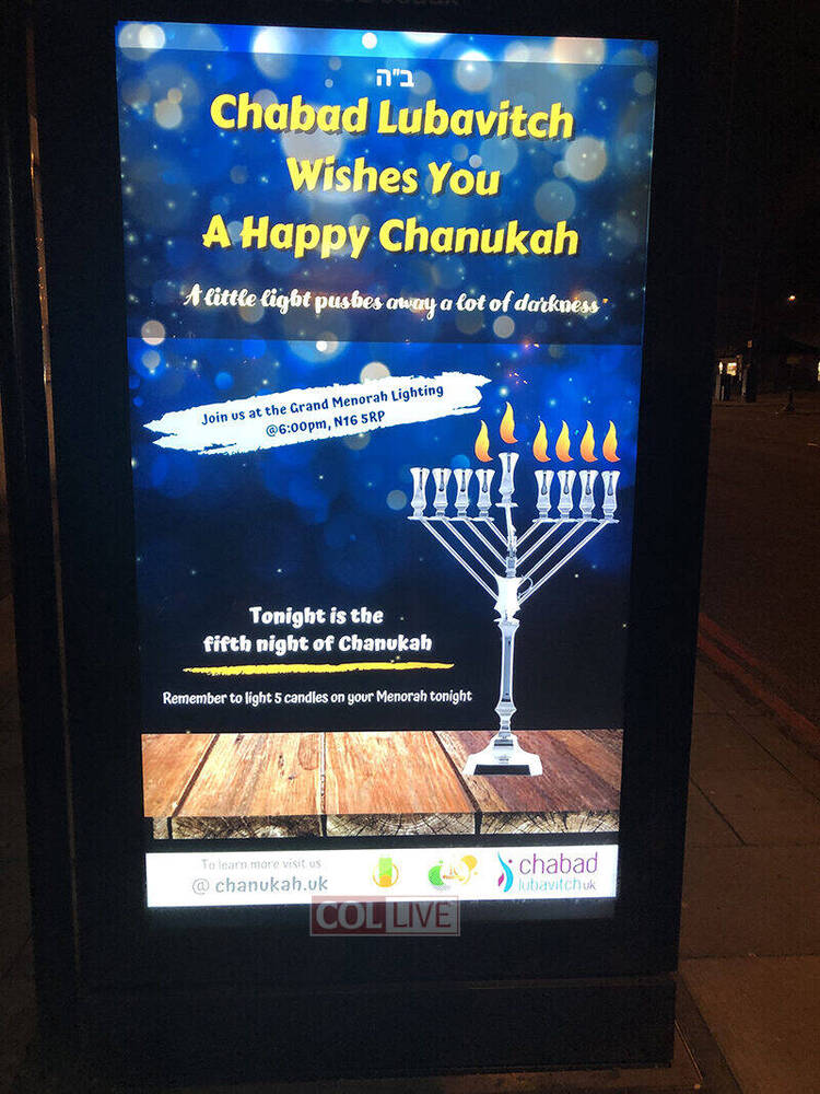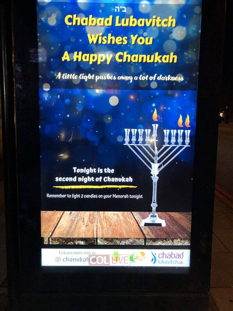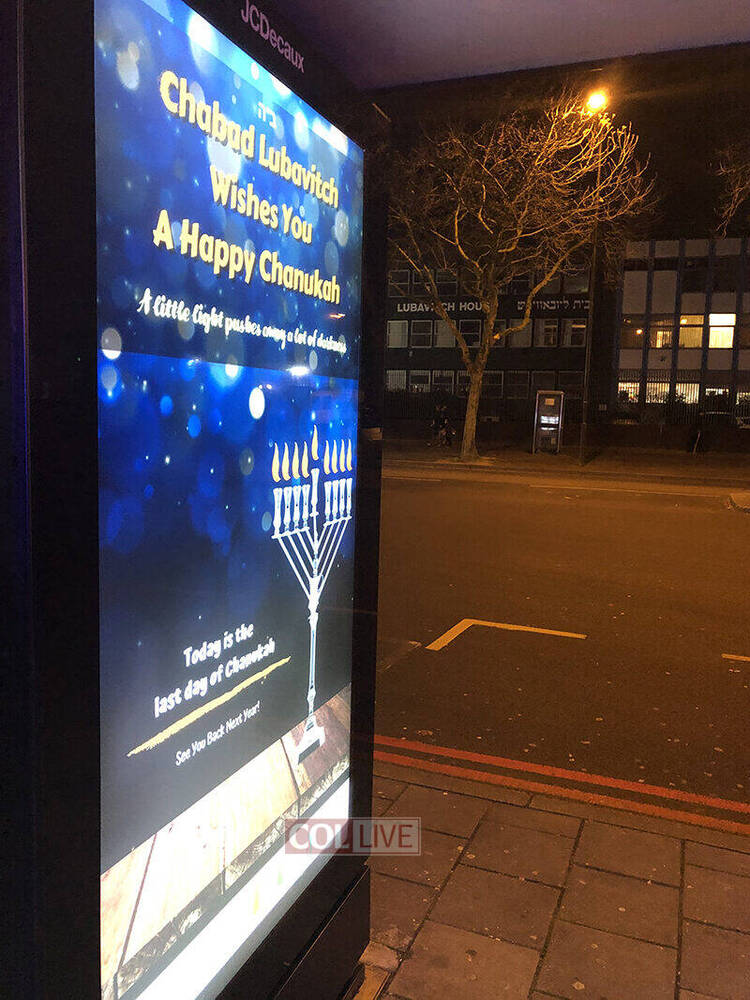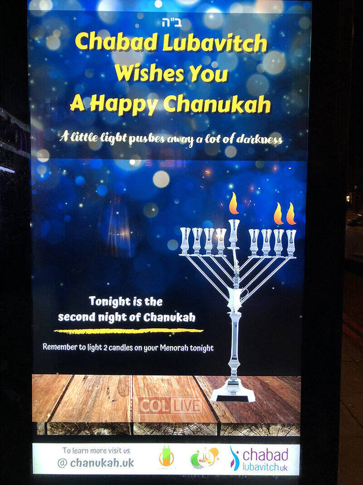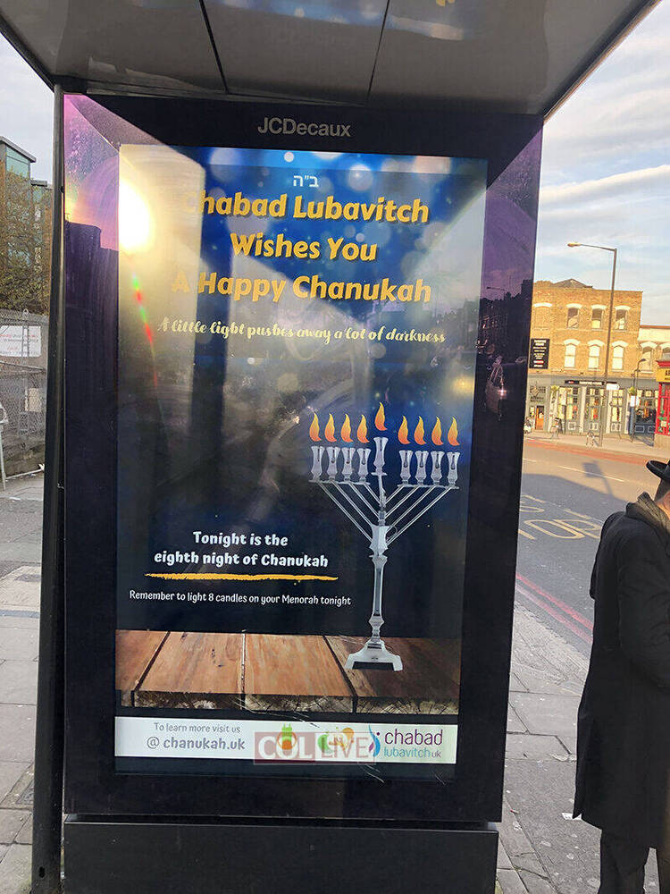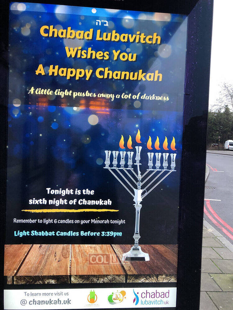 Digital bus stops in North London seen by thousands of people proudly displayed reminders to celebrate the Jewish holiday of Chanukah.