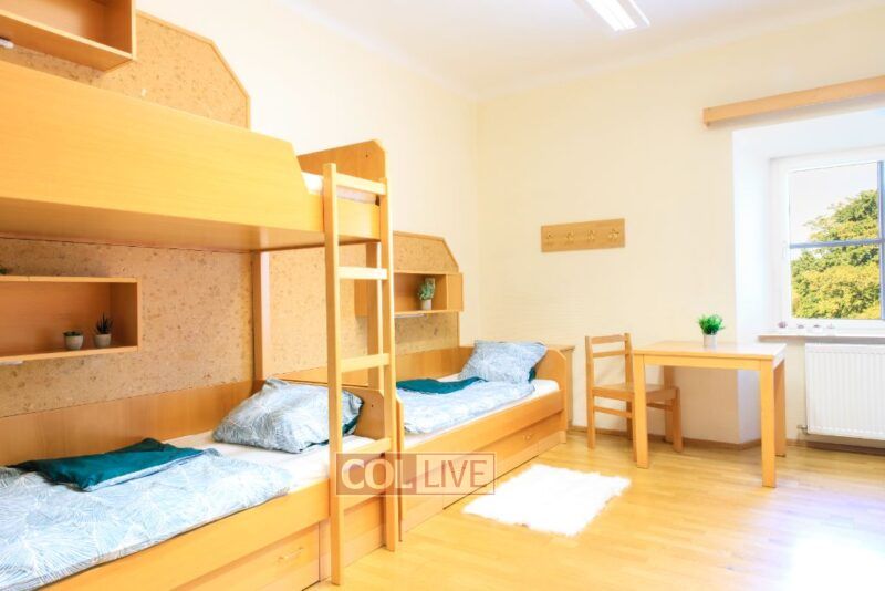 A: Our dormitory provides comfortable accommodations with private bathrooms, a spacious laundry room, cozy lounges with couches, and a convenient canteen.