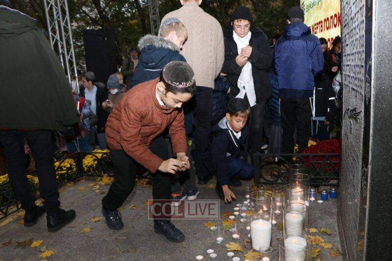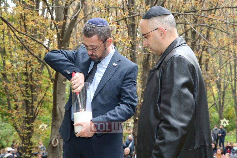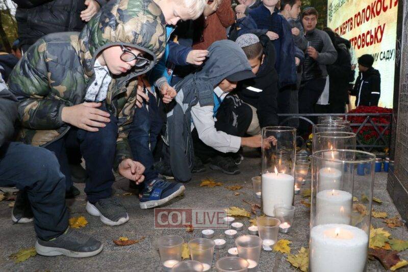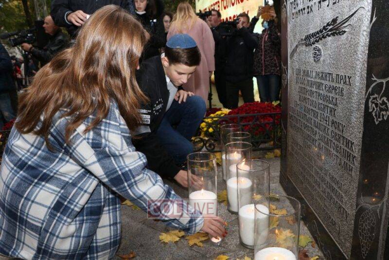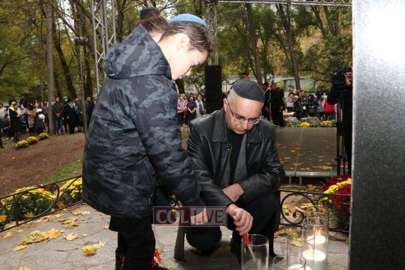 The end of the funeral ceremony was a memorial prayer, which was delivered by the head of the Jewish religious community Alexander Fridkis, a minute of silence in memory of the innocent victims and the lighting of memory candles at the memorial stele by the students of the city’s Jewish school, which were joined by many of those present.