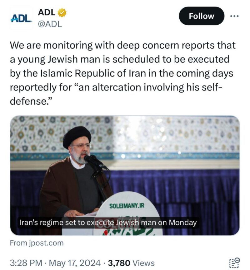The young man has been sentenced to death following his involvement in a fatal altercation with a local non-Jewish Iranian.